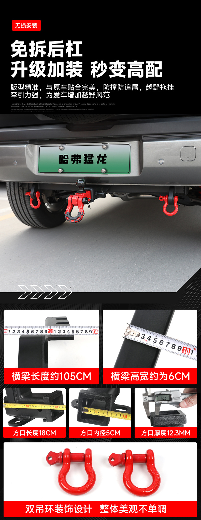 Tags: Haval Raptor Towing, off-road accessories, rear bumper guard, recovery hook, Tow Hitch Receiver, trailer arm, U-Shaped Tow Point