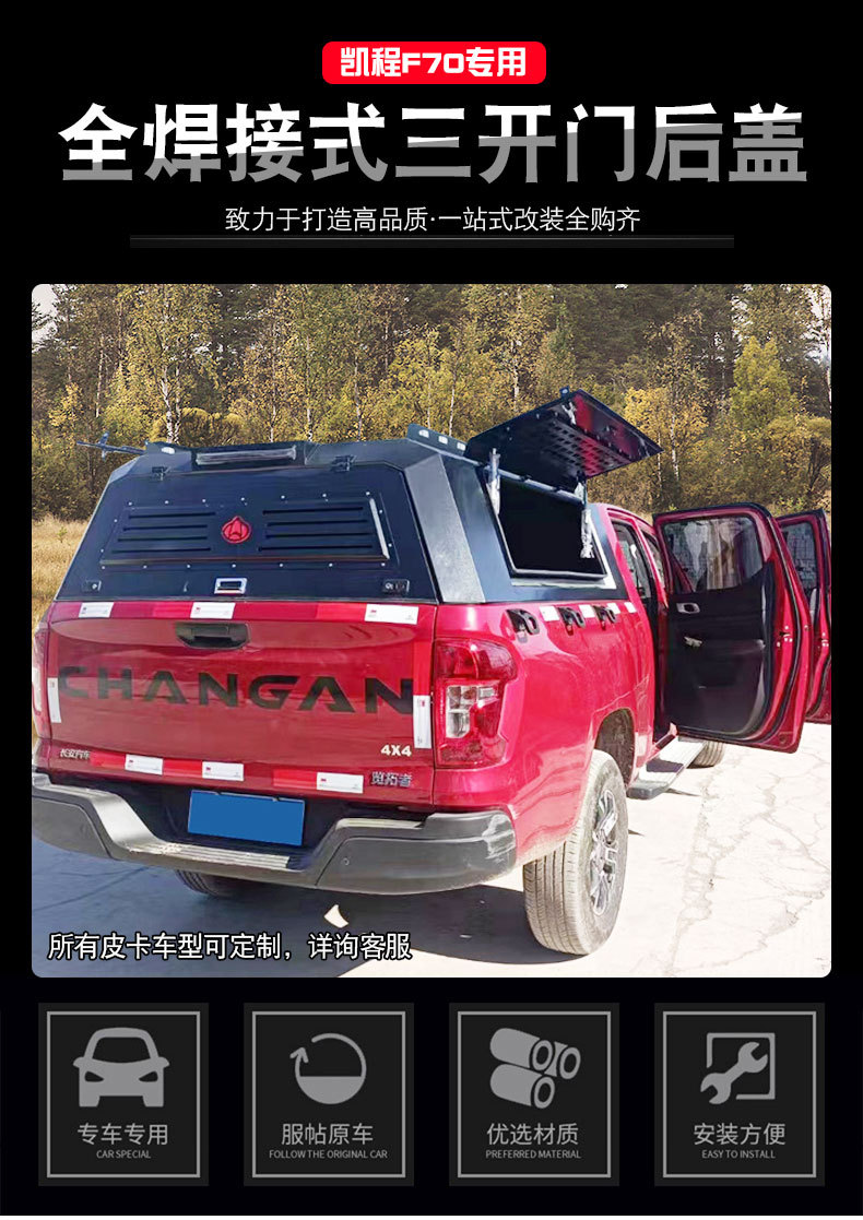 Upgrade your Changan F70 with our heavy-duty all-welded steel truck bed cap. Features a three-door functional design for easy access and durable cargo protection.