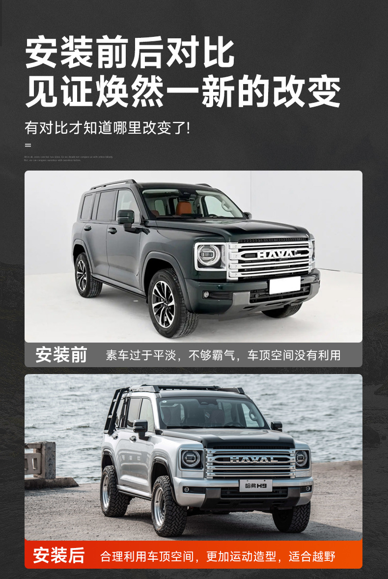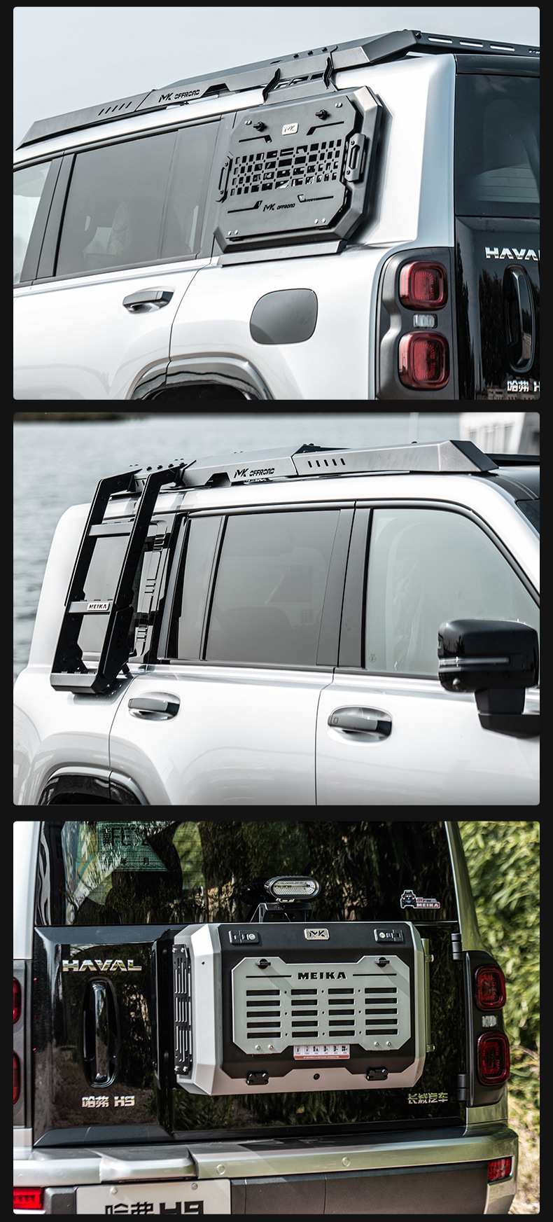 Tags: car rooftop storage, external ladder, Haval H9 accessories, off-road cargo carrier, overlanding gear, roof rack platform, side ladder