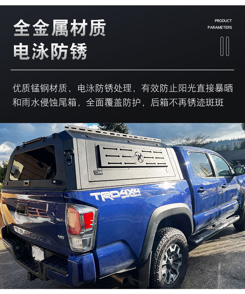 Upgrade your pickup with this high-duty aluminum alloy truck bed topper. Featuring a triple-door design for easy access and manganese steel for ultimate durability.