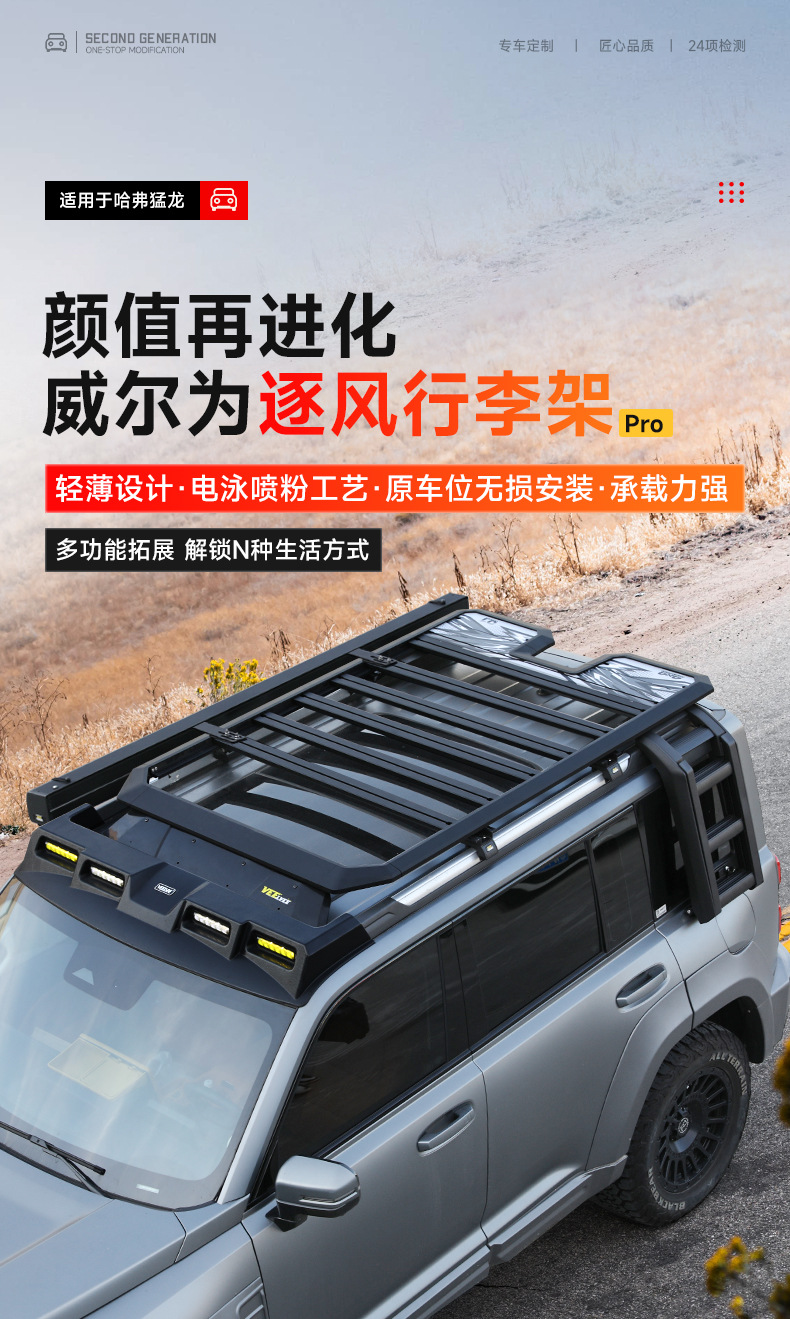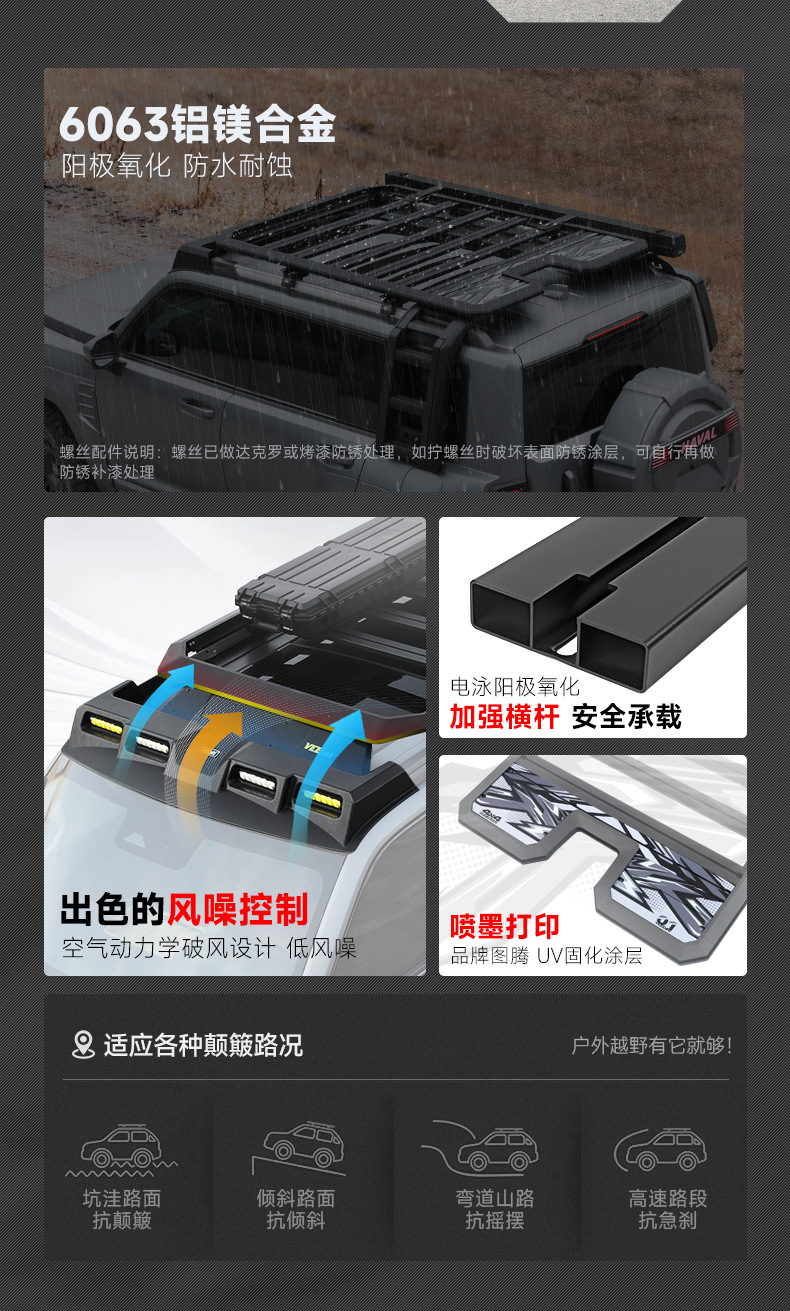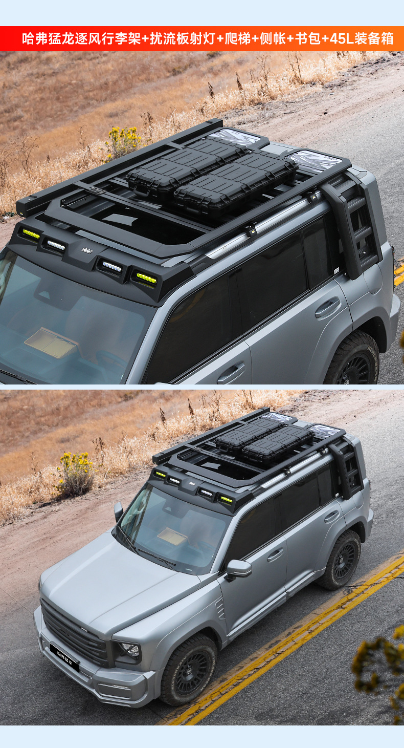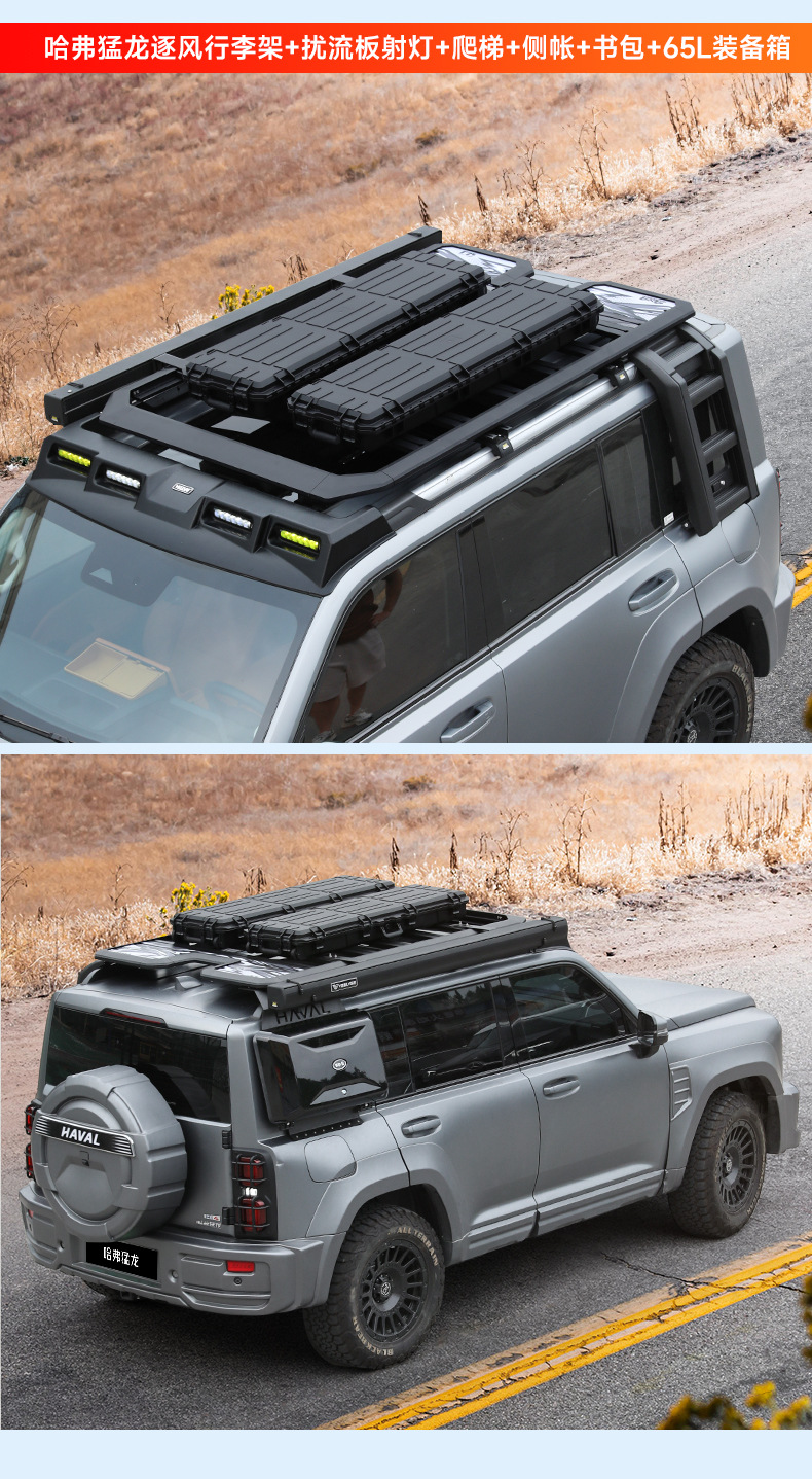 Heavy Duty Aluminum Roof Rack Platform for Haval Raptor Off-Road Cargo Basket with Extension Rails and Lighting Mounts
