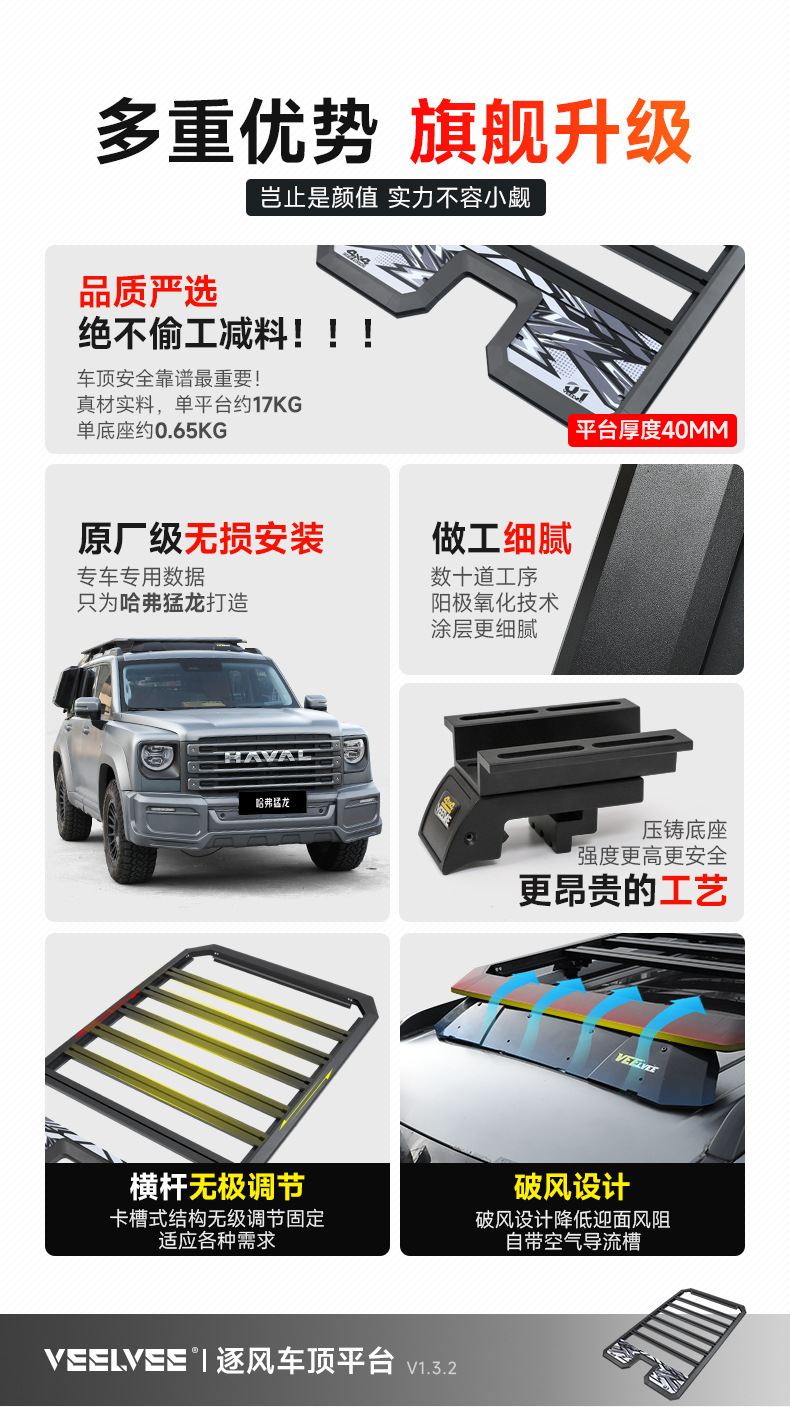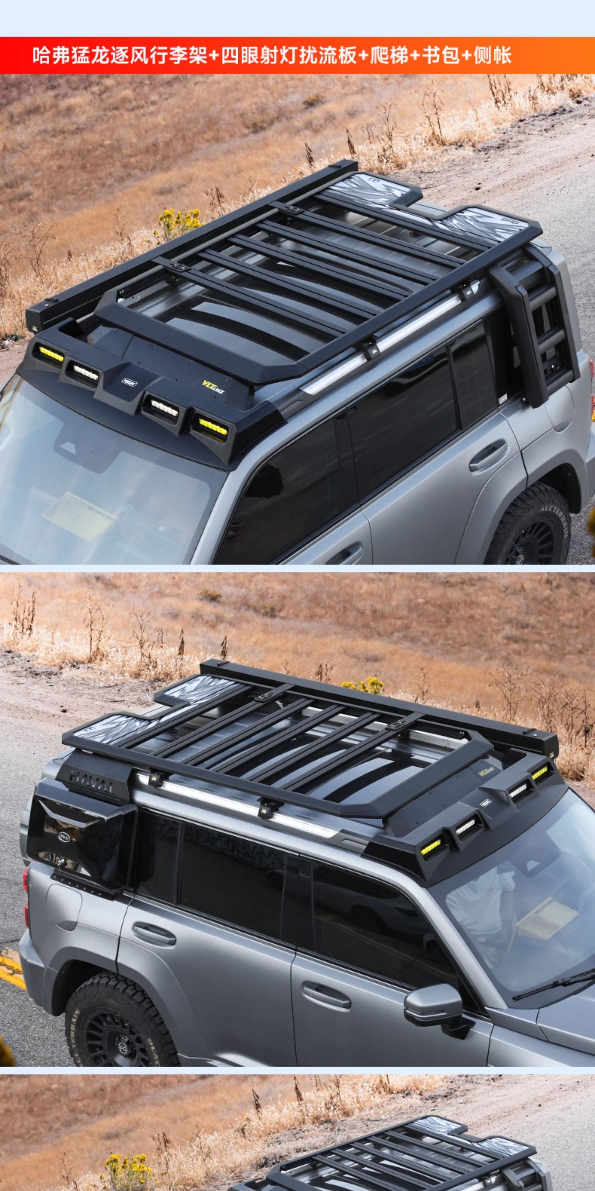 Be the first to review “Heavy Duty Aluminum Roof Rack Platform for Haval Raptor Off-Road Cargo Basket with Extension Rails and Lighting Mounts” Cancel reply