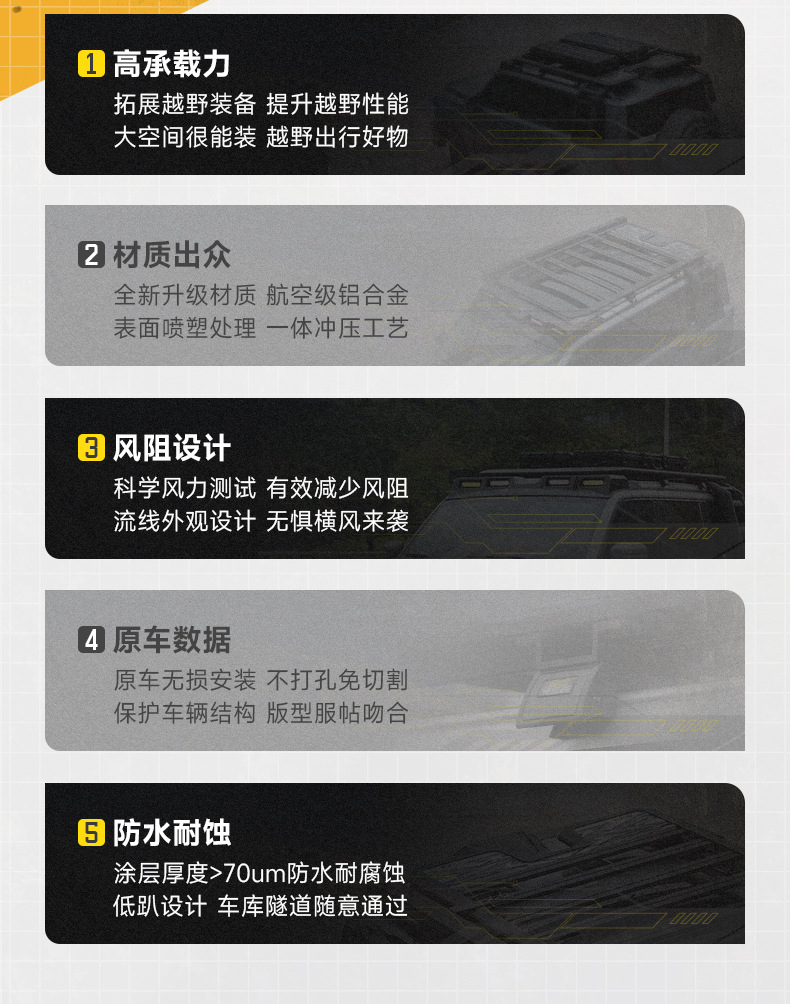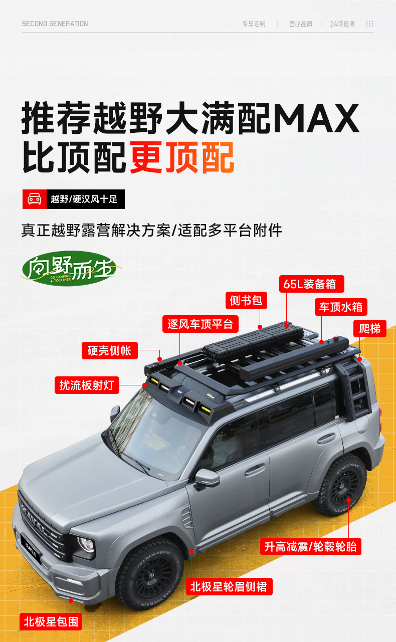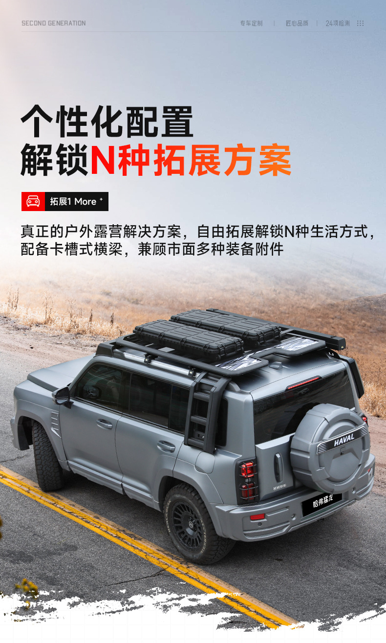 - Versatile expansion platform supports mounting for side tents, folding ladders, and additional gear storage solutions.