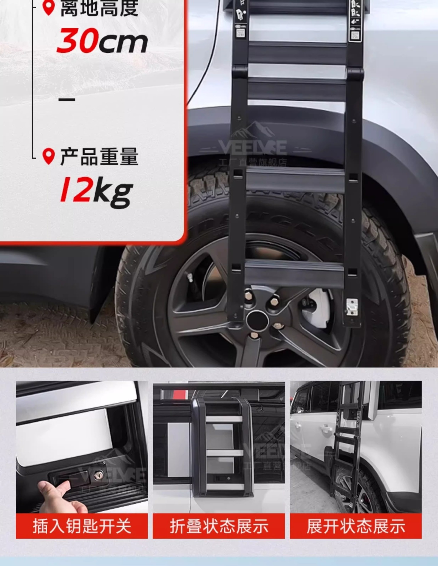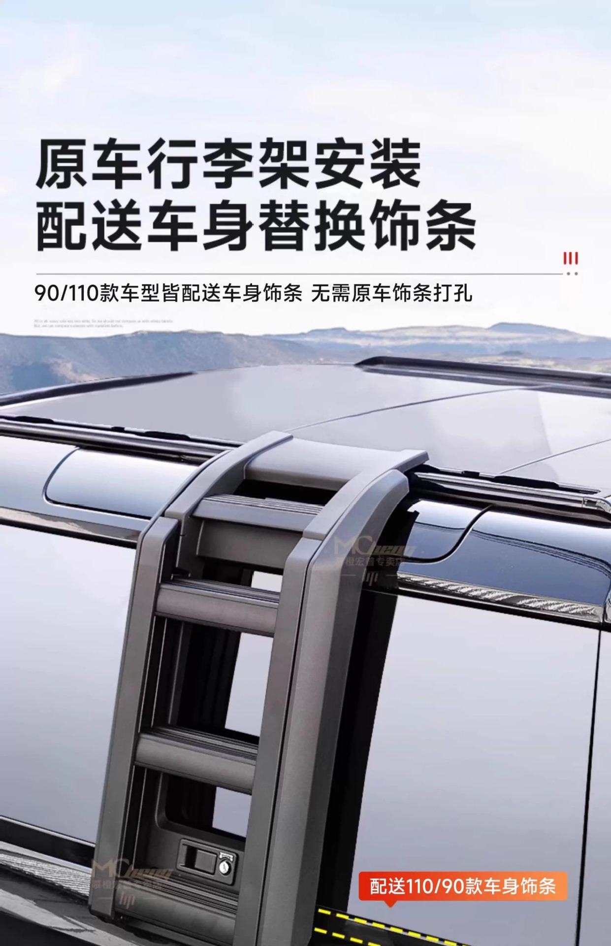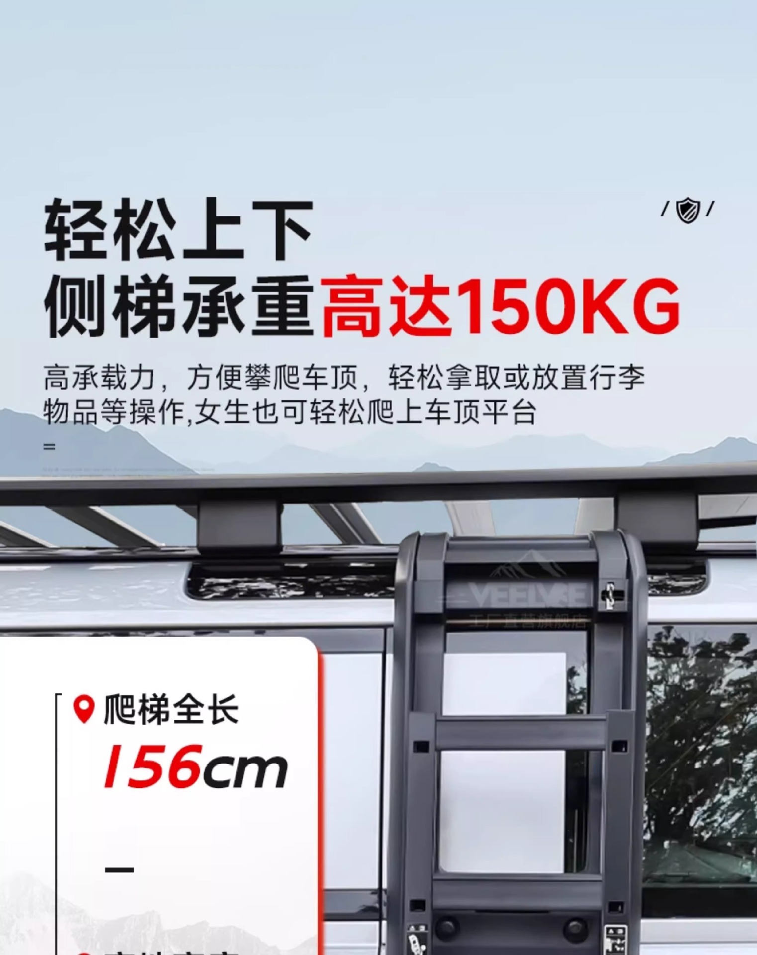 - Specifically designed side climbing ladder provides safe and easy access to your vehicle’s roof storage areas.
