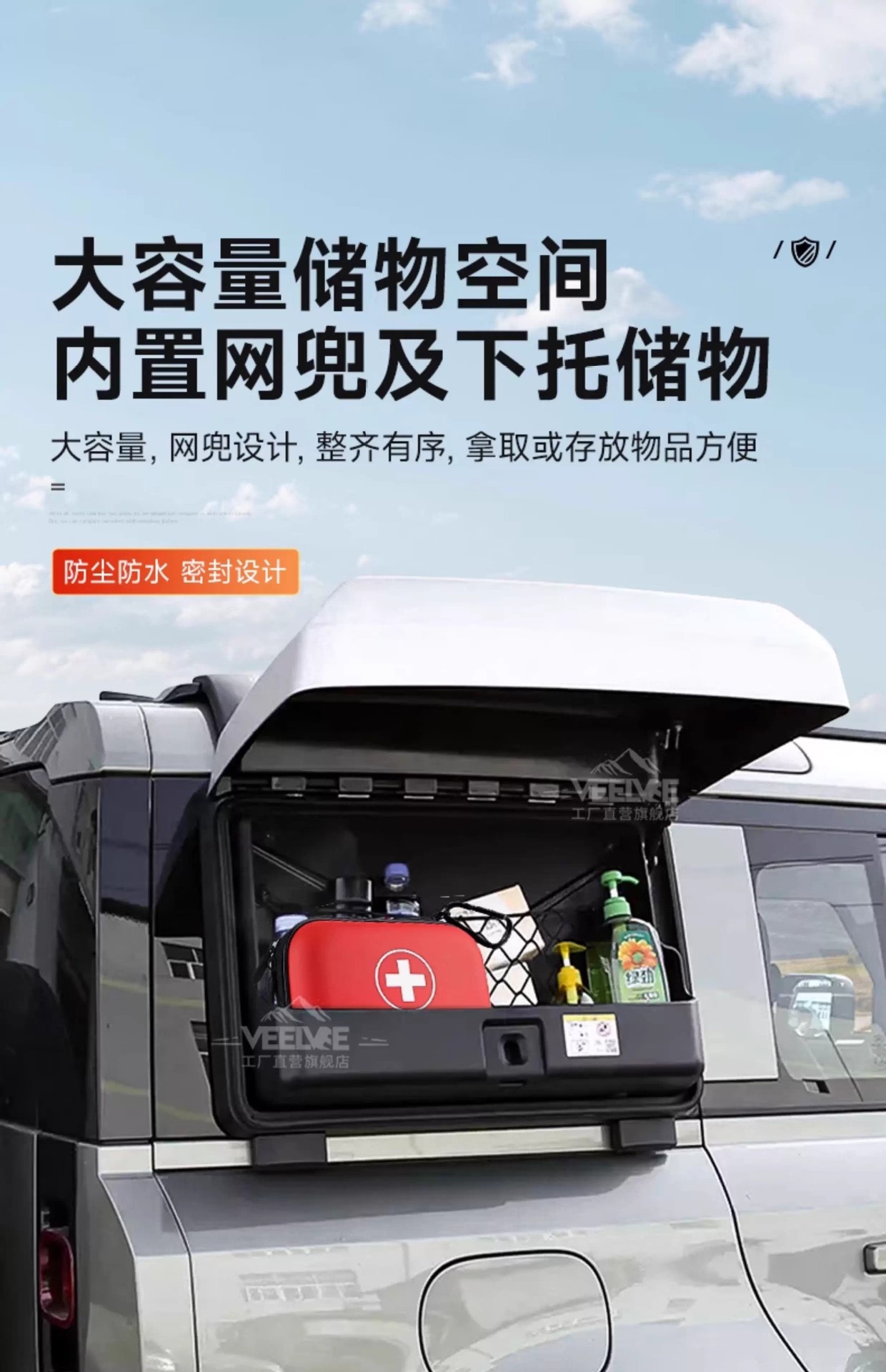 - Integrated equipment storage box offers organized space for off-road gear and travel essentials.