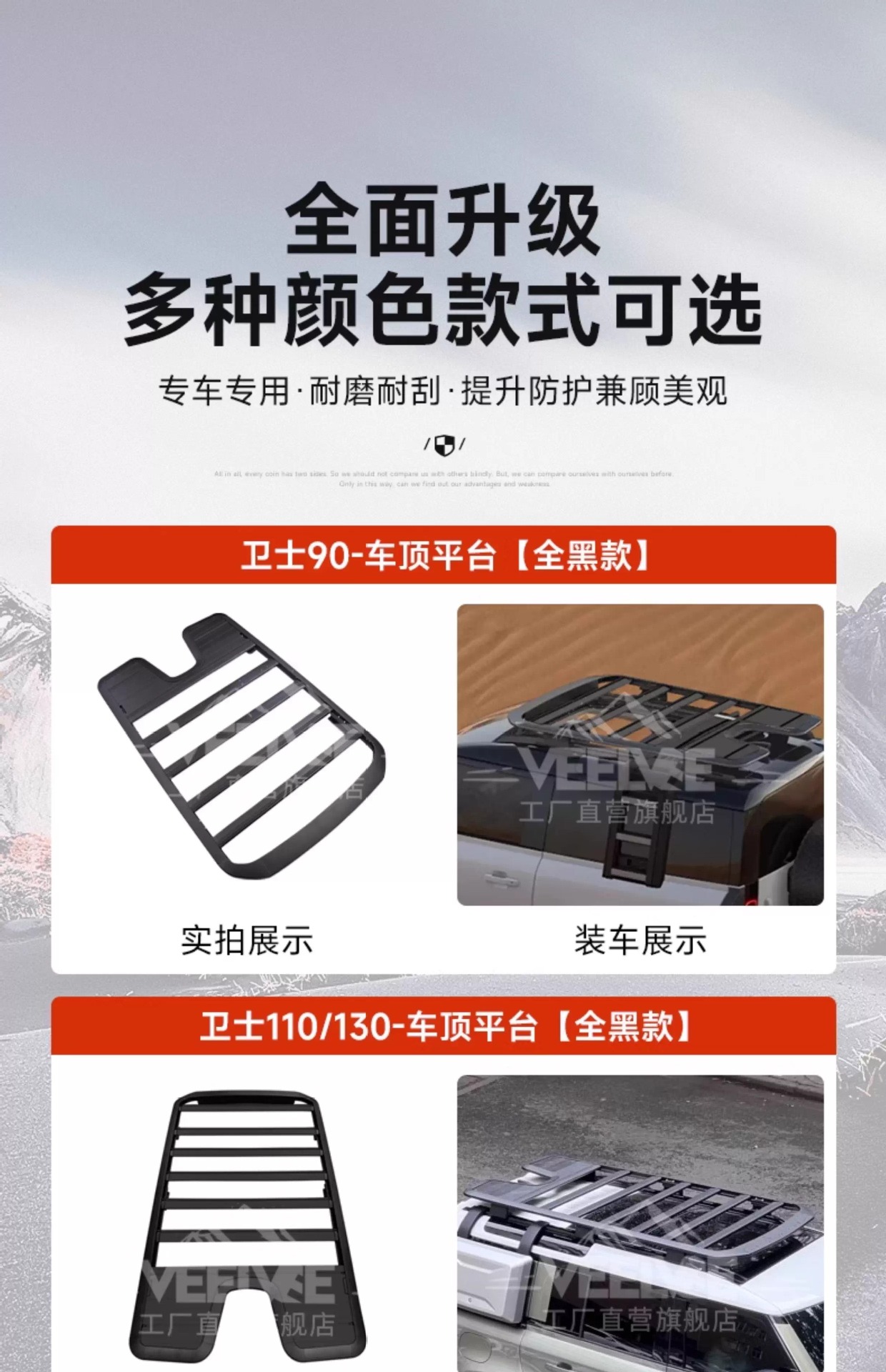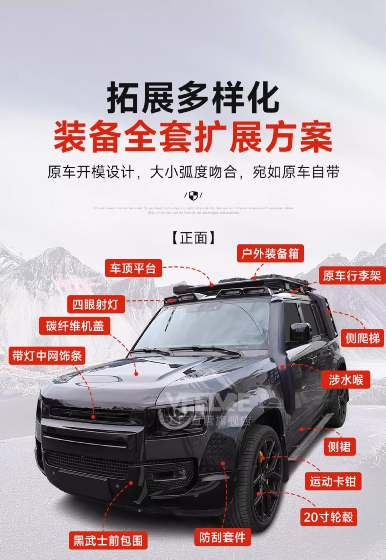 - Streamlined aerodynamic design minimizes wind noise and drag while enhancing the rugged off-road aesthetic.