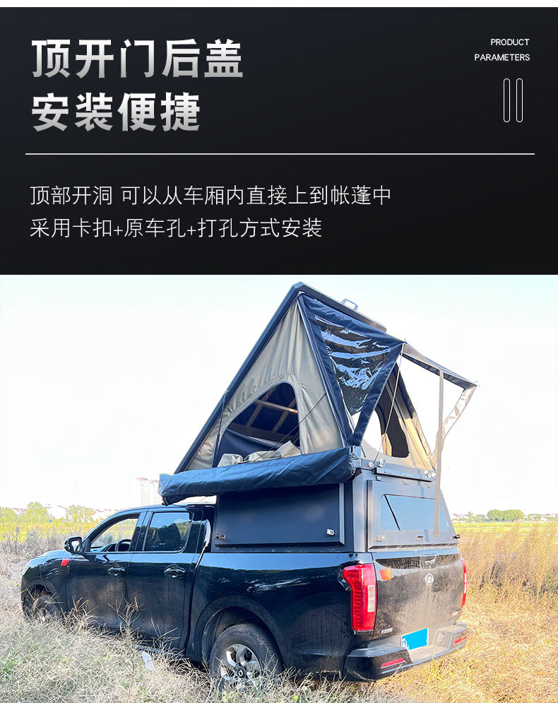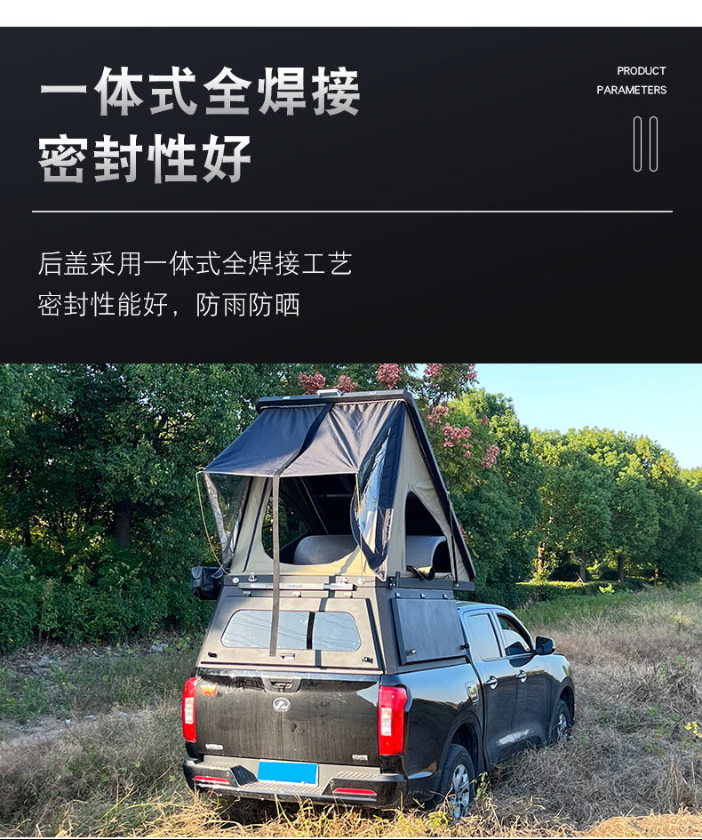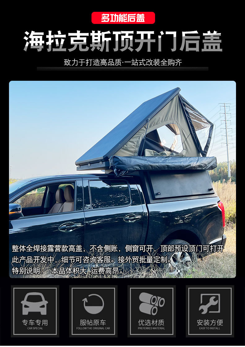 Enhance your Hilux Revo SR5 or Vigo with this heavy-duty multi-functional pickup canopy featuring an integrated roof tent for ultimate camping convenience.