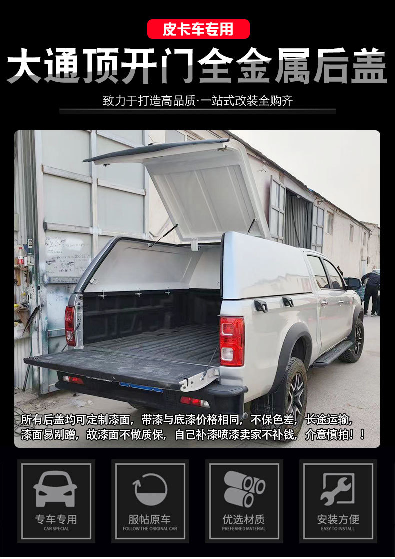 - Integrated large rear door design ensures smooth loading and unloading of bulky items in the truck bed.