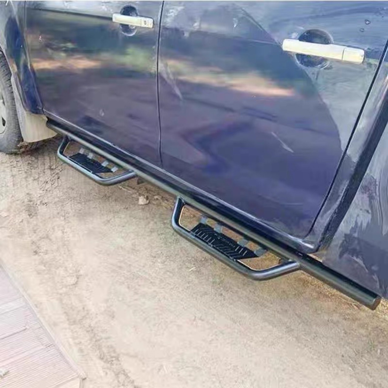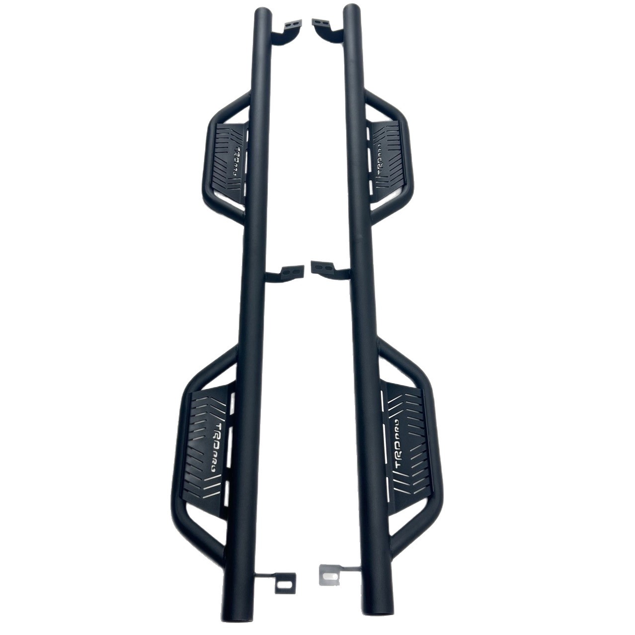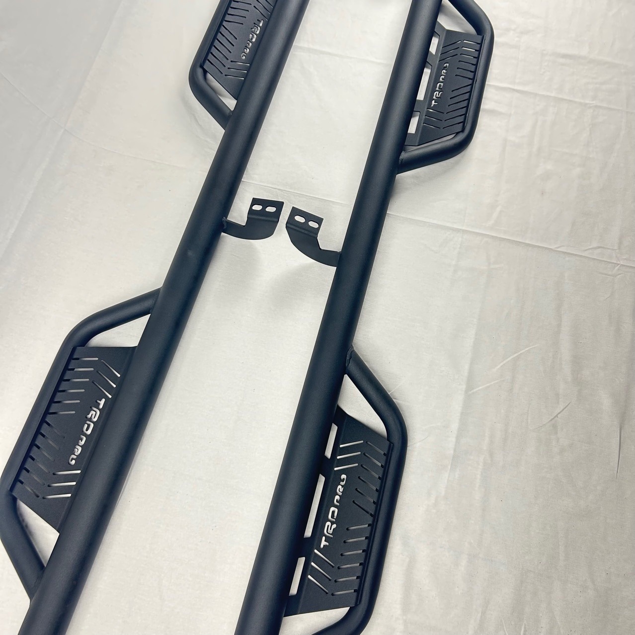 Upgrade your Toyota Tacoma with heavy-duty carbon steel side steps. Features a rugged round tube design, anti-slip pads, and easy bolt-on installation for off-road durability.