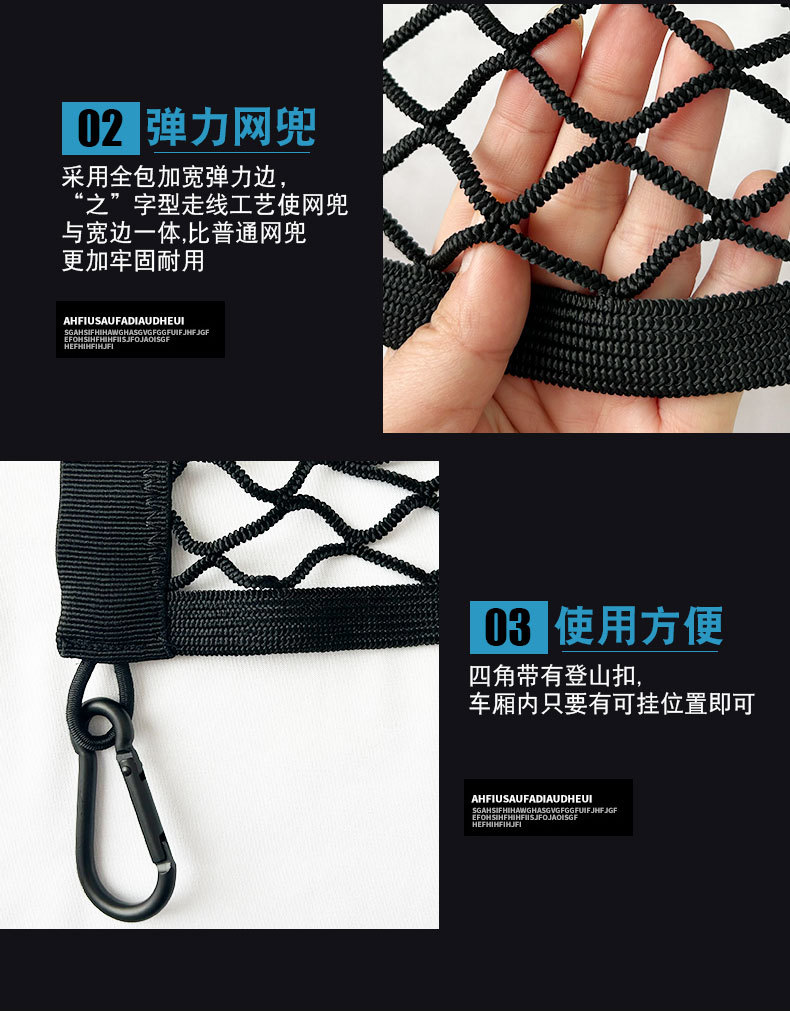 - Integrated anti-slip hooks ensure the net remains firmly attached to tie-down points during transit.