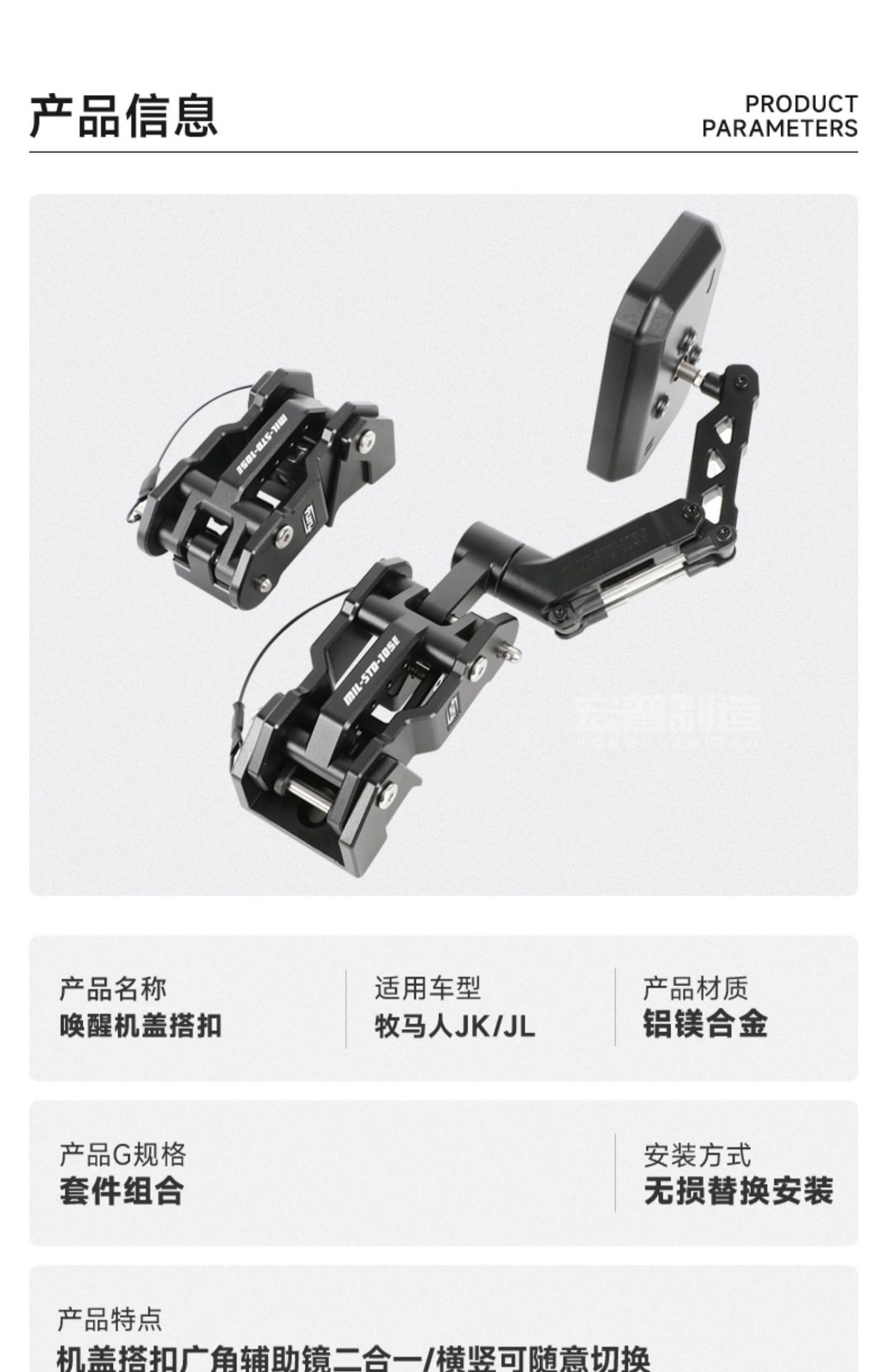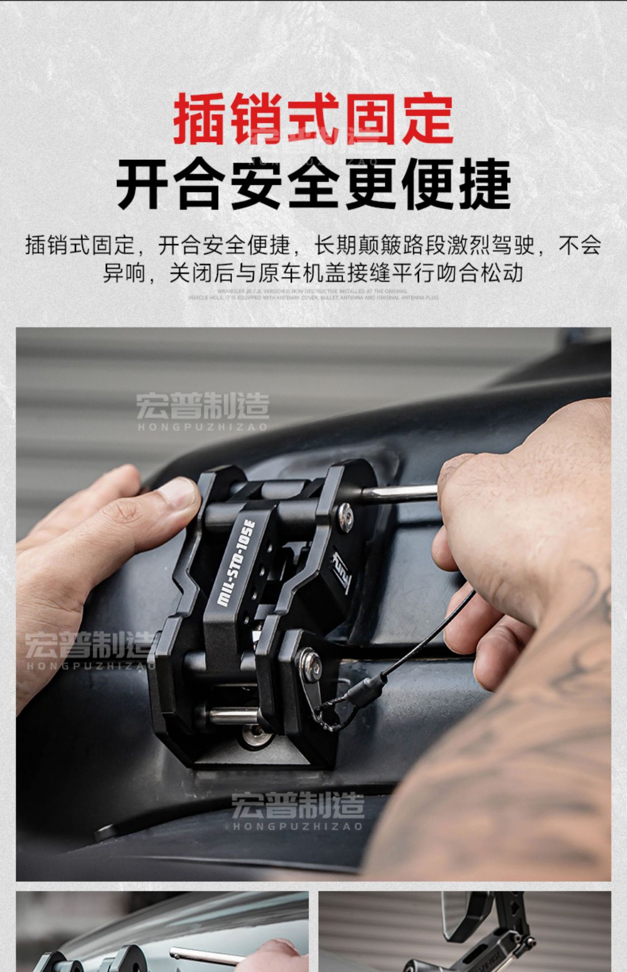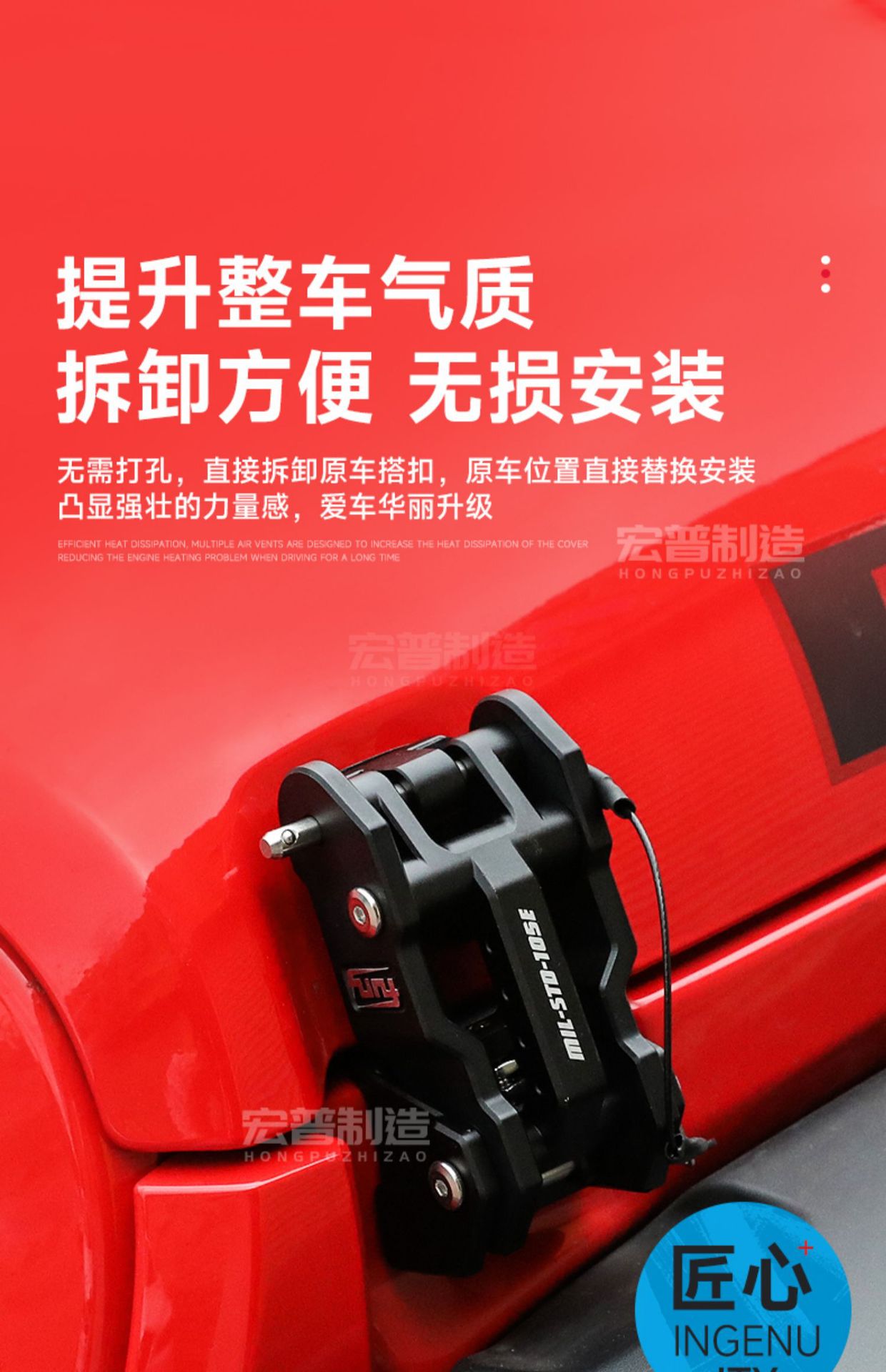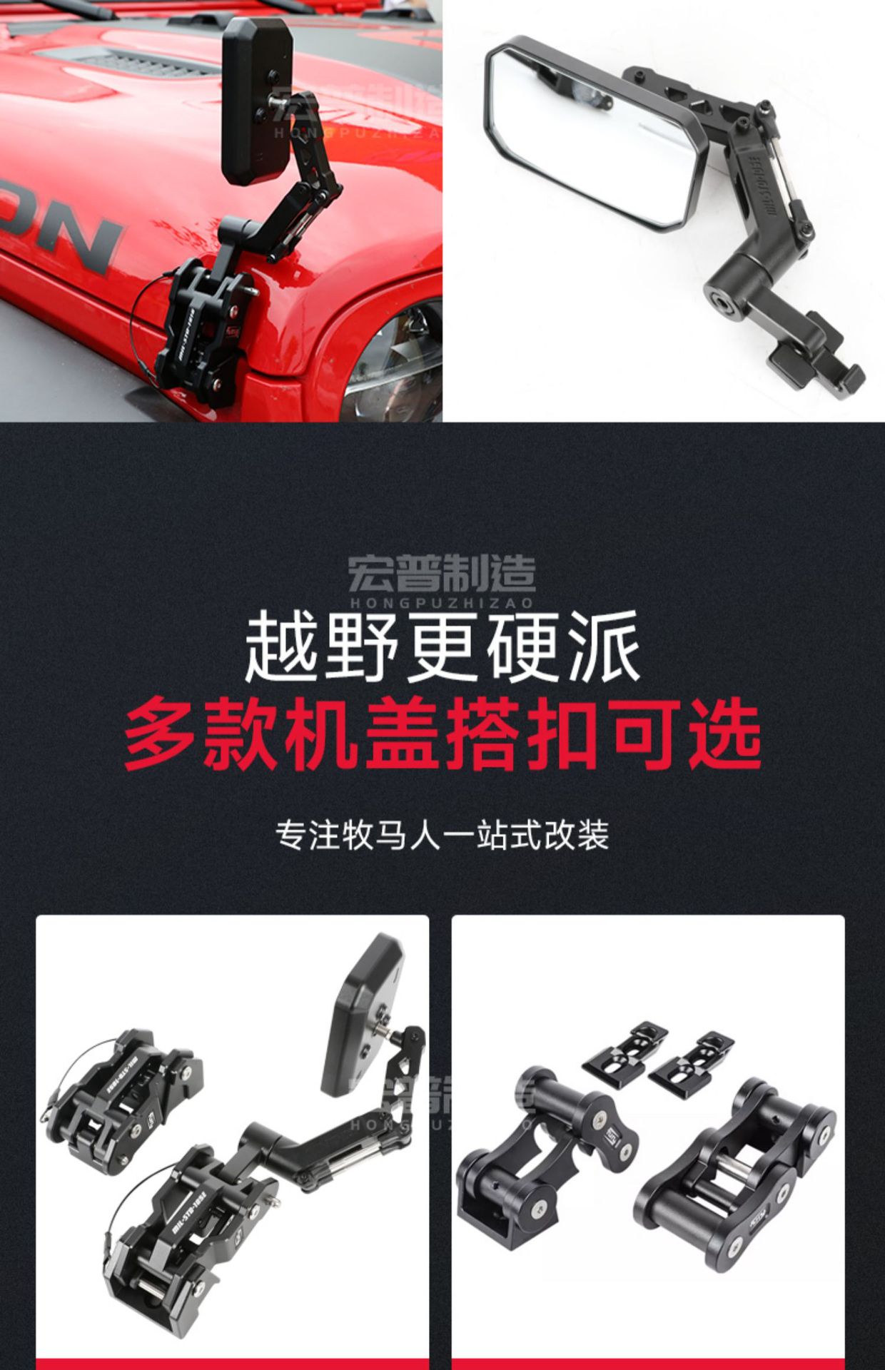 - Secure Locking Mechanism: Specifically engineered to eliminate hood flutter and vibration during high-speed driving or rough off-road conditions.