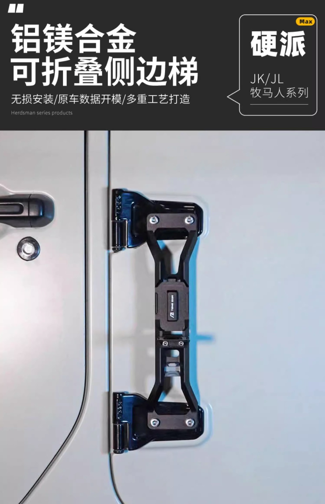 Upgrade your off-road experience with this heavy-duty folding door hinge step. Designed for easy roof access and durable performance on 2007-2024 Wrangler models.