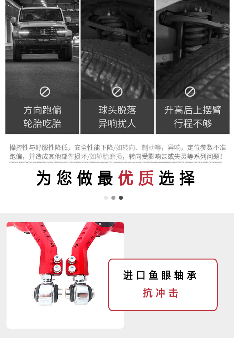 Tags: adjustable wishbone, forged suspension arms, front upper control arms, JAC T8 performance parts, lifting kit components, Reinforced Suspension, steering geometry correction