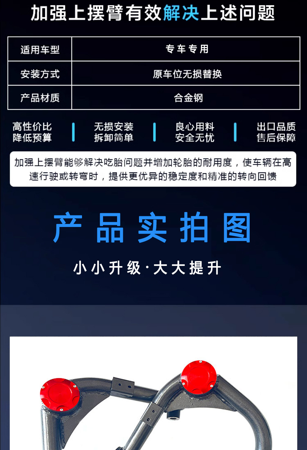 - Equipped with heavy-duty ball joints and bushings to handle rigorous off-road conditions.
