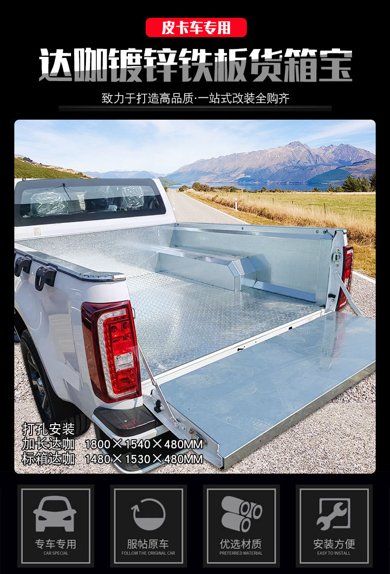 Upgrade your Qingling TAGA with this heavy-duty galvanized metal bed liner. Protects your pickup trunk from scratches, rust, and impacts during heavy hauling.