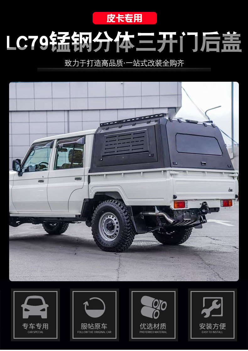 Heavy Duty Manganese Steel 3-Door Truck Bed Canopy for Toyota Land Cruiser LC79 Pickup