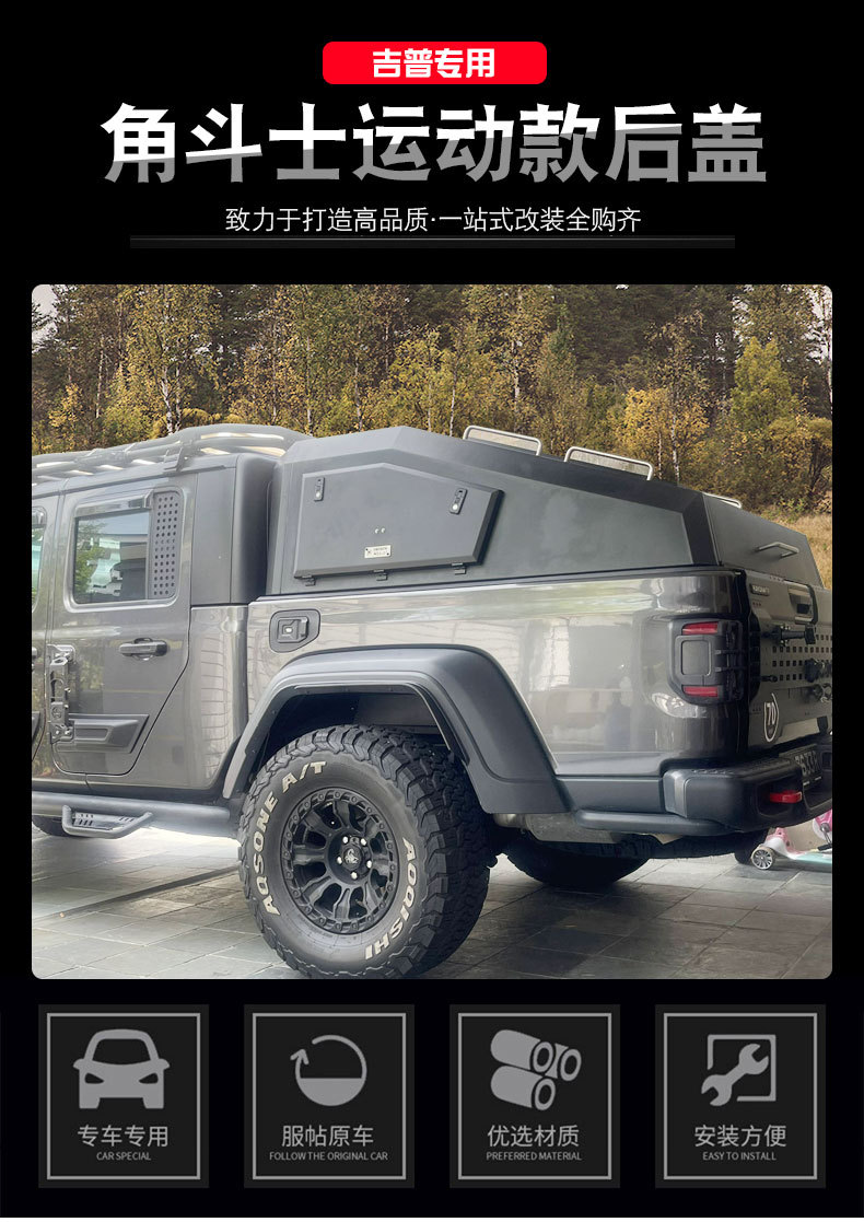 Tags: cargo protection, fastback bed cover, Jeep Gladiator canopy, manganese steel canopy, off-road truck accessories, steel truck topper, truck bed cap