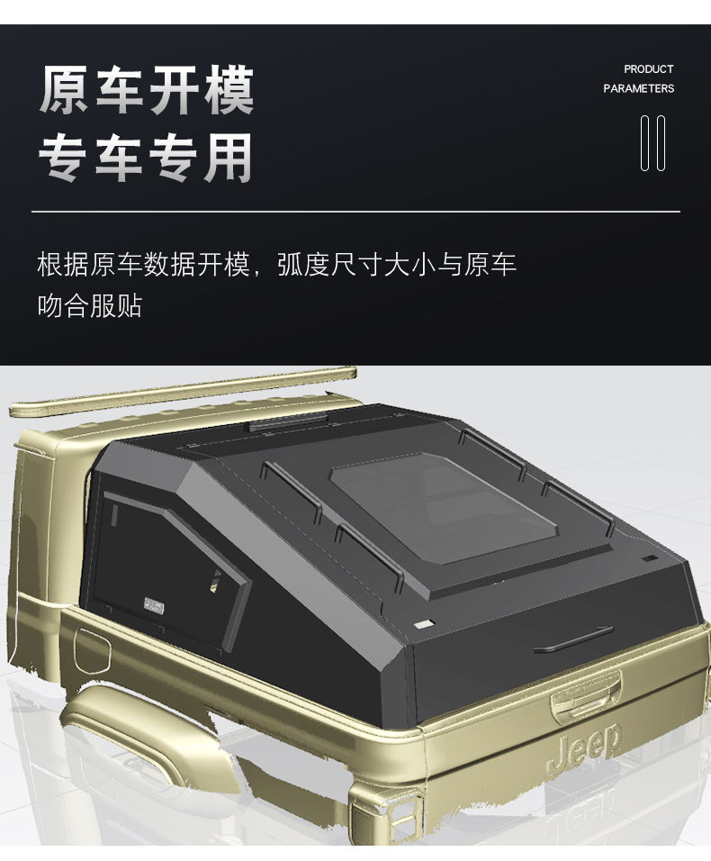 Upgrade your Jeep Gladiator with this heavy-duty manganese steel fastback truck cap. Durable, aero-efficient, and weather-resistant for peak off-road performance.