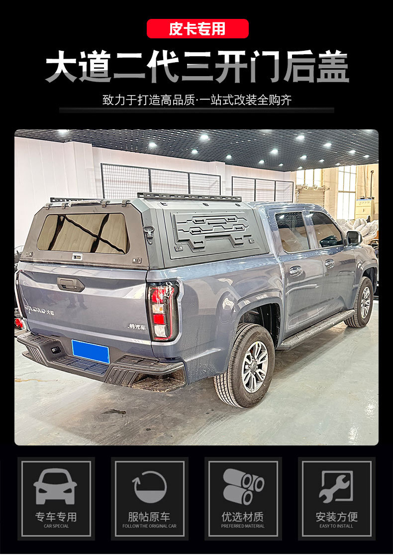 Tags: camping truck shell, heavy duty truck cap, JMC DaDao accessories, manganese steel tonneau, pickup truck canopy, steel canopy doors, truck bed cover