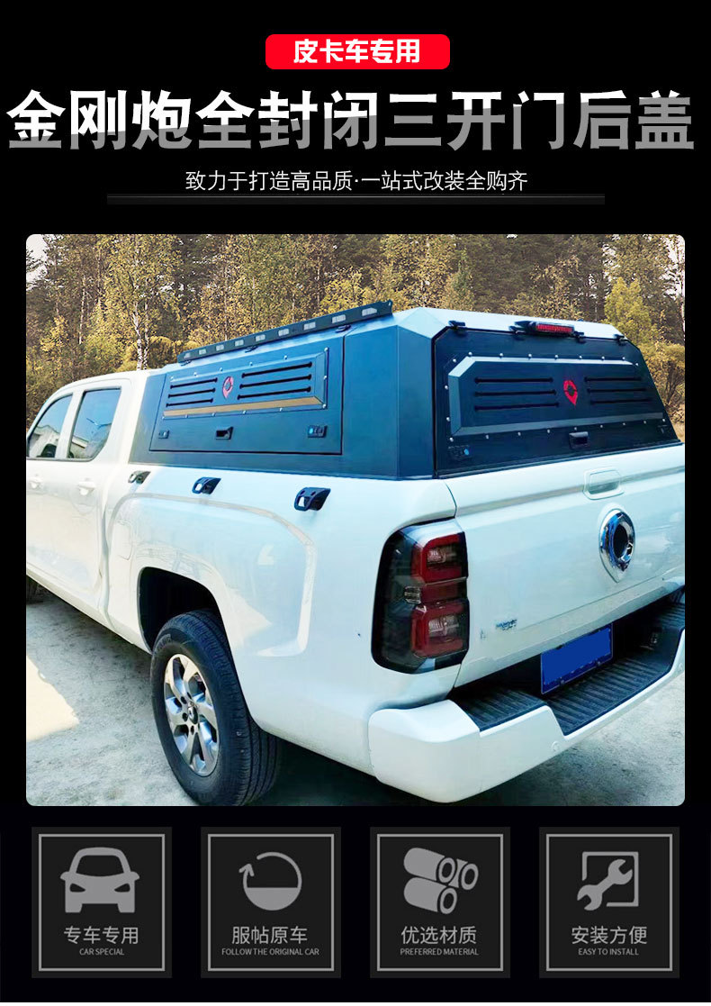Tags: cargo box cover, GWM canopy, heavy duty truck enclosure, manganese steel truck topper, pickup camper shell, triple door truck cap, truck bed canopy