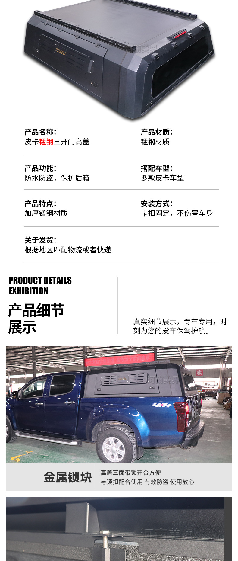 Tags: cargo bed cover, hardtop canopy, Isuzu D-MAX accessories, manganese steel shell, off-road truck cap, pickup truck topper, truck bed canopy