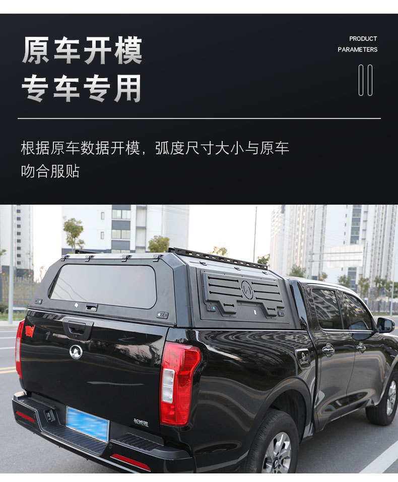 Tags: manganese steel topper, off-road truck shell, pick-up cargo cover, rear cargo enclosure, tri-fold truck cap, truck bed canopy, truck bed protection