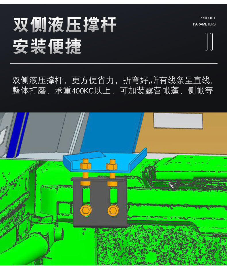 - Custom-engineered mounting system allows for a stable installation that complements the vehicle’s original body lines and utility features.