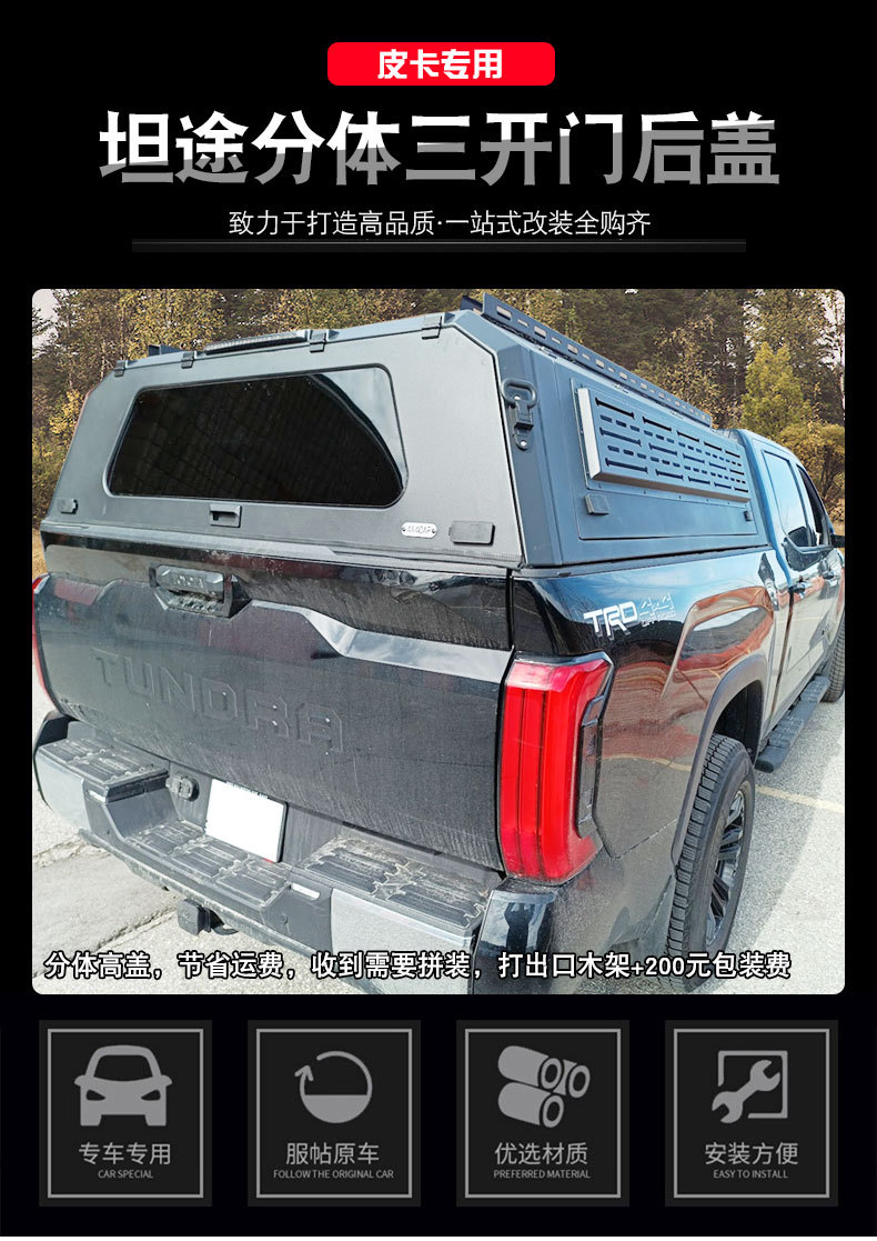 Upgrade your Tundra with a heavy-duty manganese steel truck bed cap featuring a three-door opening system for easy access and maximum cargo security on the road.