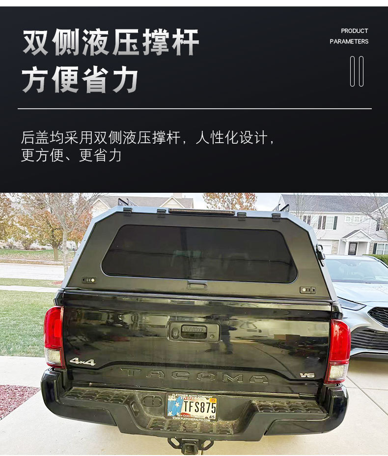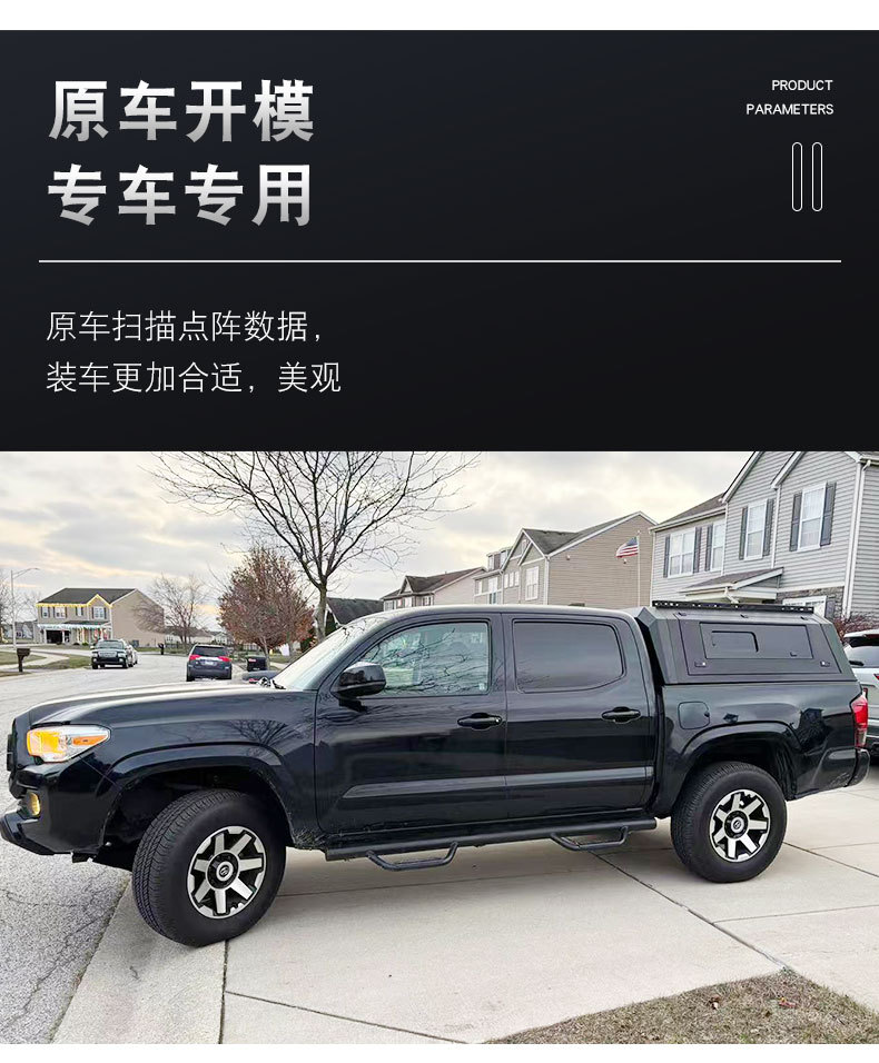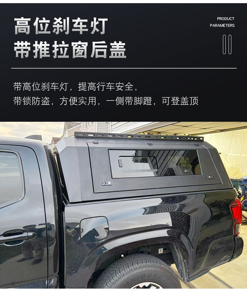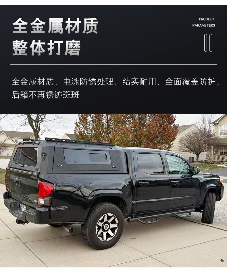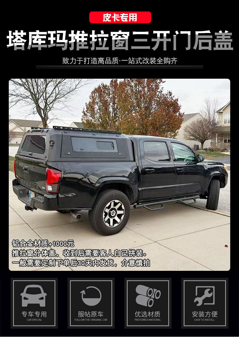 Upgrade your Toyota Tacoma with this heavy-duty manganese steel truck bed topper featuring a three-door split design and sliding windows for maximum utility.