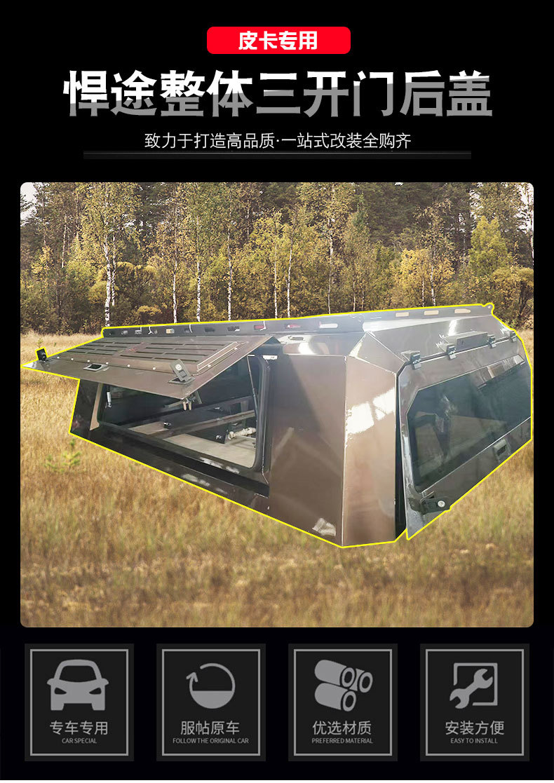 Tags: JAC T8 accessories, manganese steel camper shell, off-road truck topper, pickup hardtop, three-door bed cover, truck bed canopy, truck caps