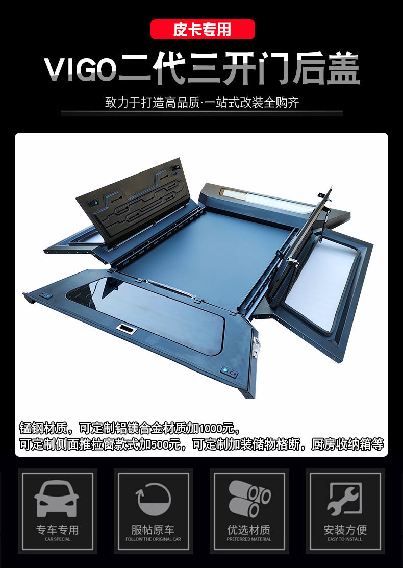 Heavy Duty Manganese Steel Truck Bed Canopy with Three Opening Doors for Toyota Hilux Vigo Revo SR5 2009-2016