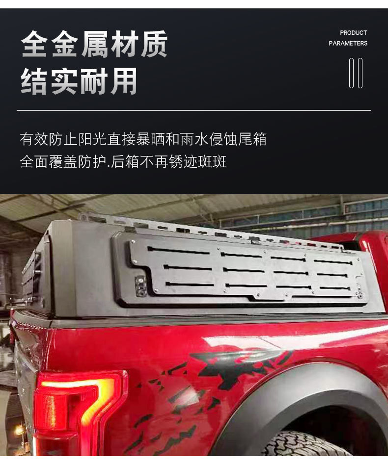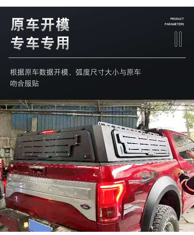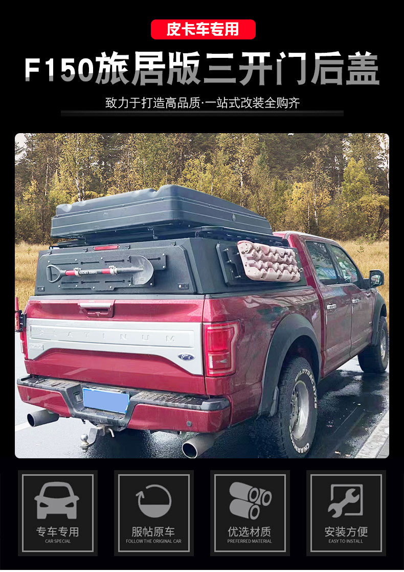 Enhance your Ford F150 Raptor with this manganese steel truck bed canopy. Featuring a three-door opening and aluminum alloy build for superior cargo protection.