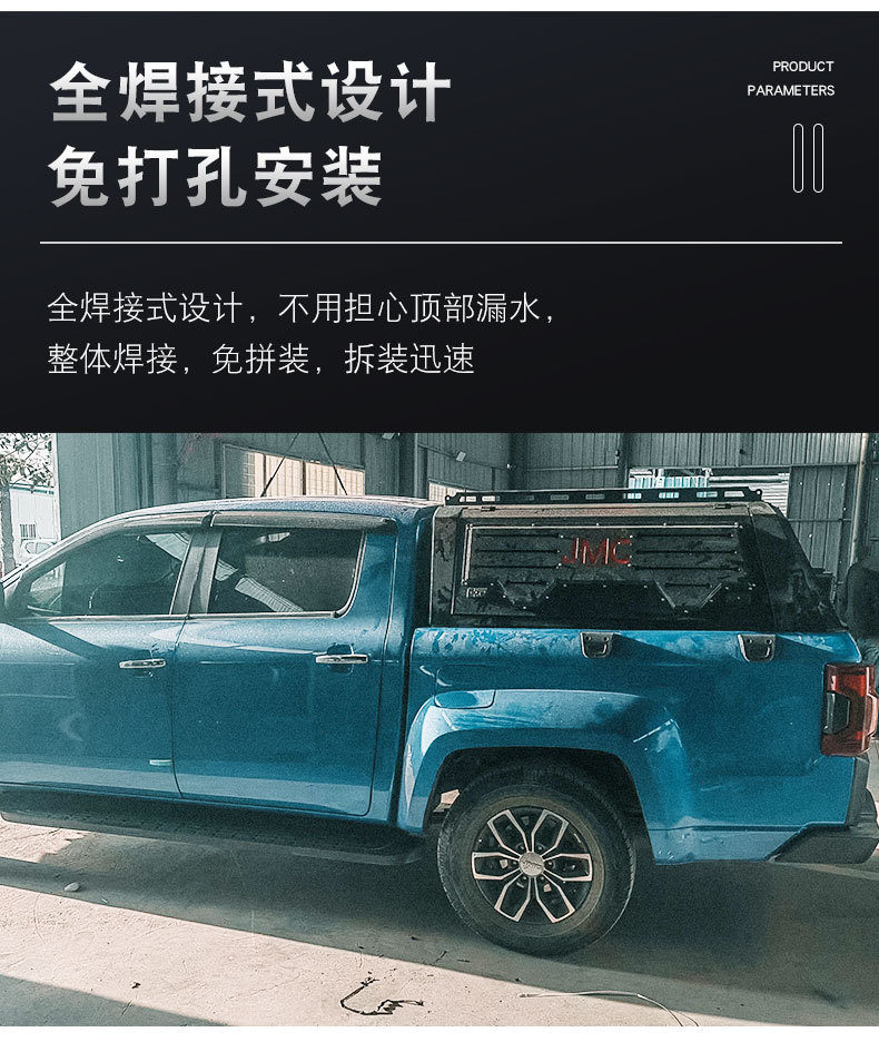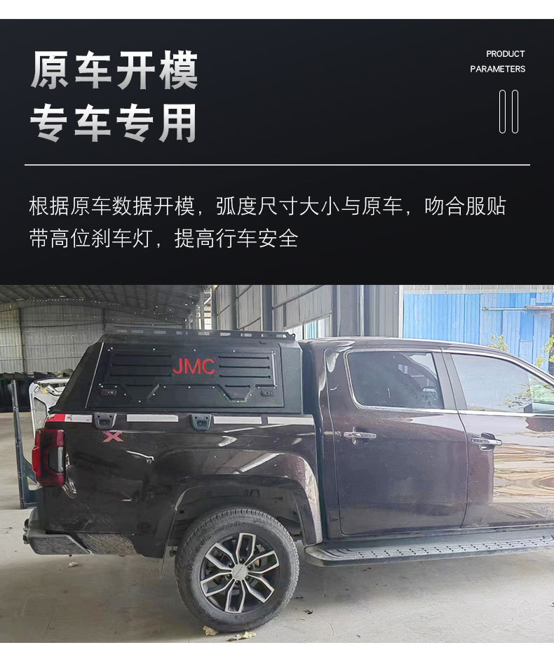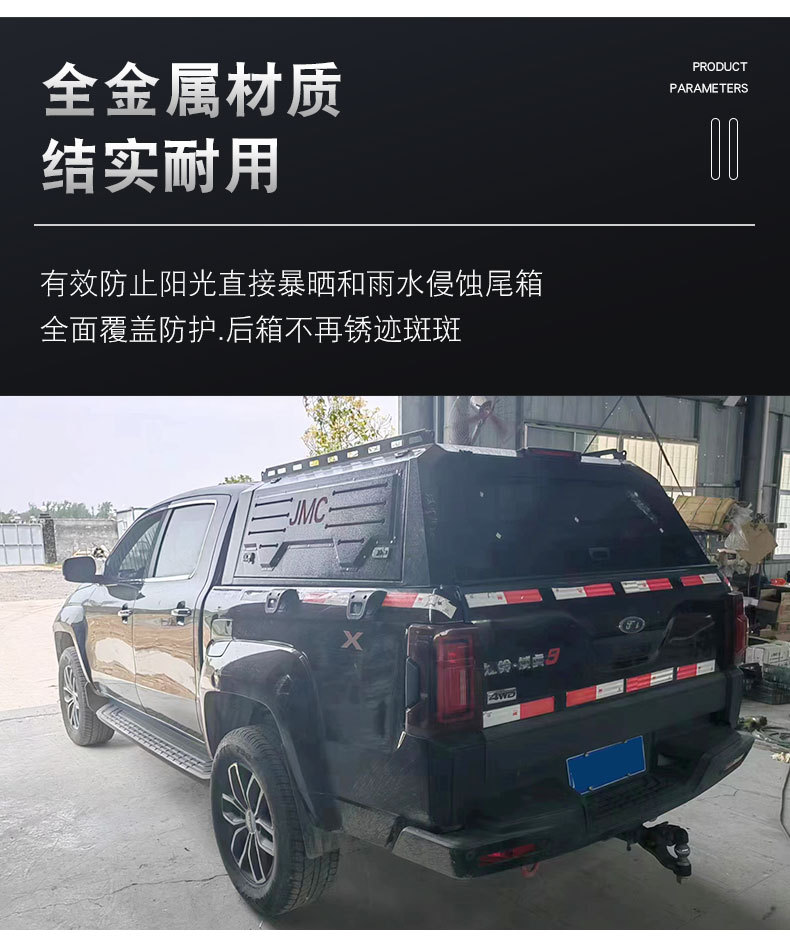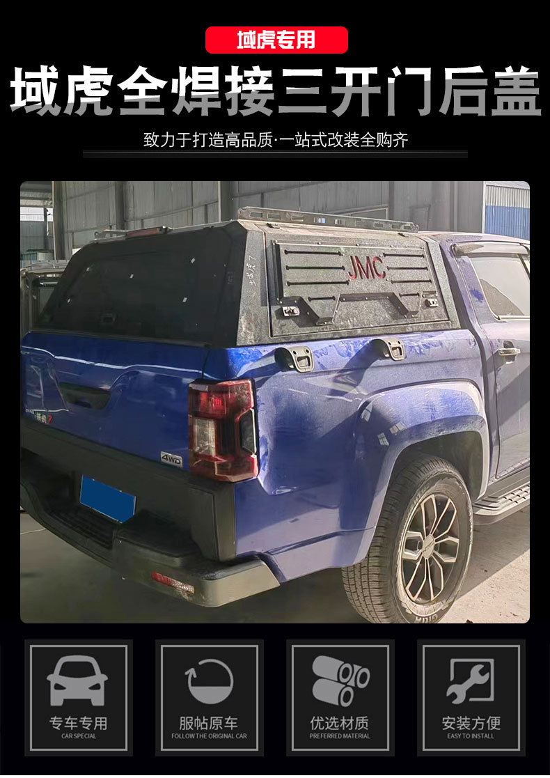 Upgrade your JMC Vigus with this durable manganese steel three-door truck bed topper. Fully welded for security and designed for easy cargo access and protection.