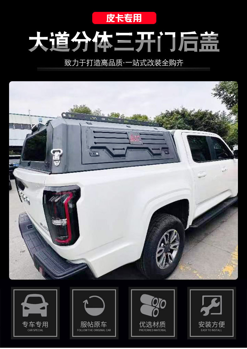 Tags: camper shell, JMC DaDao accessories, manganese steel topper, off-road bed cover, pickup cargo cover, triple door truck cap, truck bed canopy