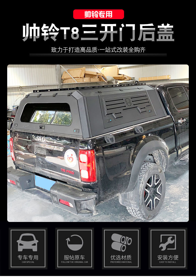 Tags: cargo box shell, JAC T8 Pro accessories, manganese steel topper, pickup high cover, rear trunk hardtop, truck bed camper shell, truck bed canopy