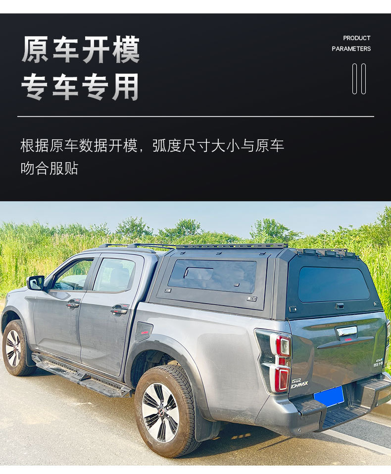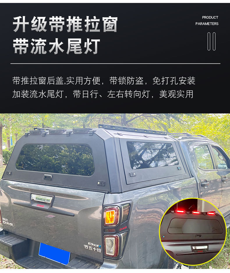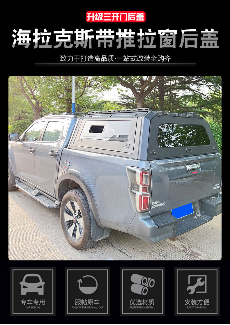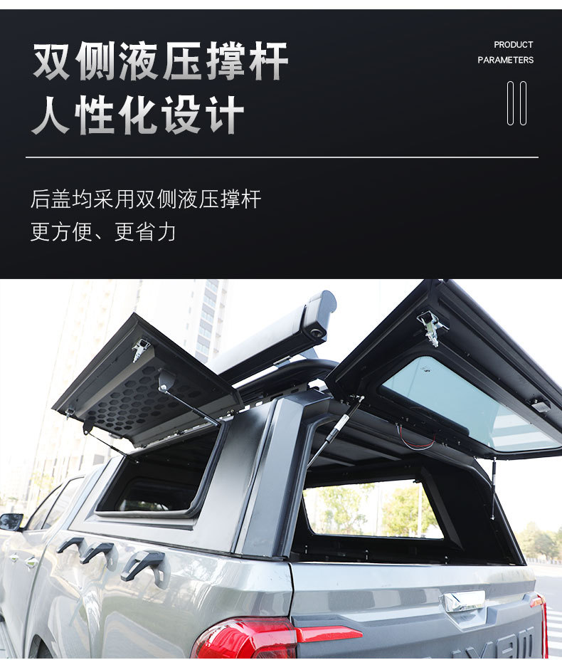- Equipped with built-in sliding glass windows to improve ventilation and visibility for the enclosed truck bed.