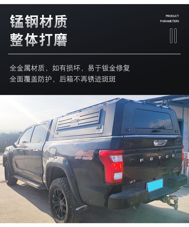 Tags: Huanghai N2 accessories, manganese steel truck shell, pickup bed cover, rainproof bed topper, tonneau cover, tri-fold truck cap, truck bed modification