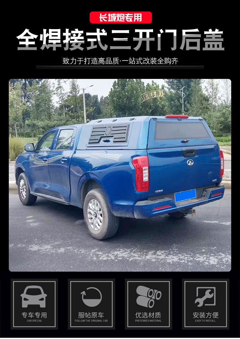 Upgrade your Great Wall Cannon with this high-strength all-welded pickup bed canopy. Features a three-door design for easy access and increased storage height.