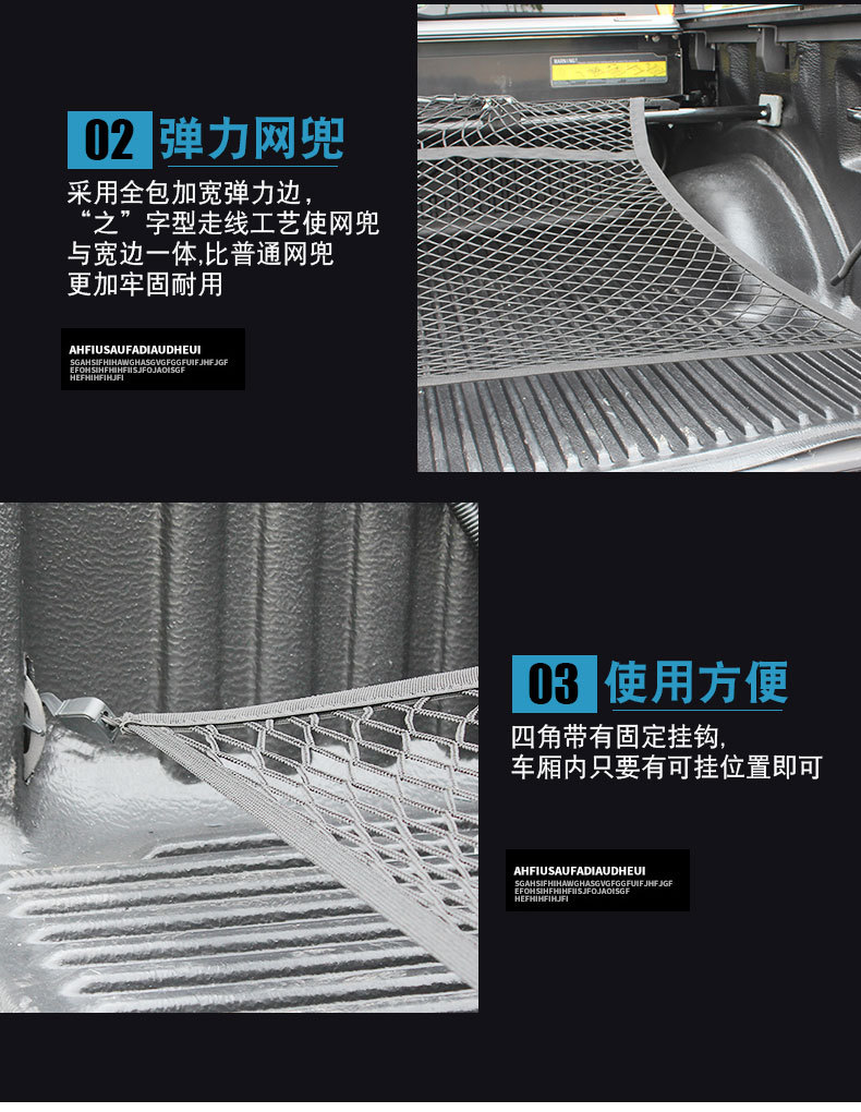 - Equipped with sturdy hooks for quick and flexible attachment to truck bed tie-down points without tools.