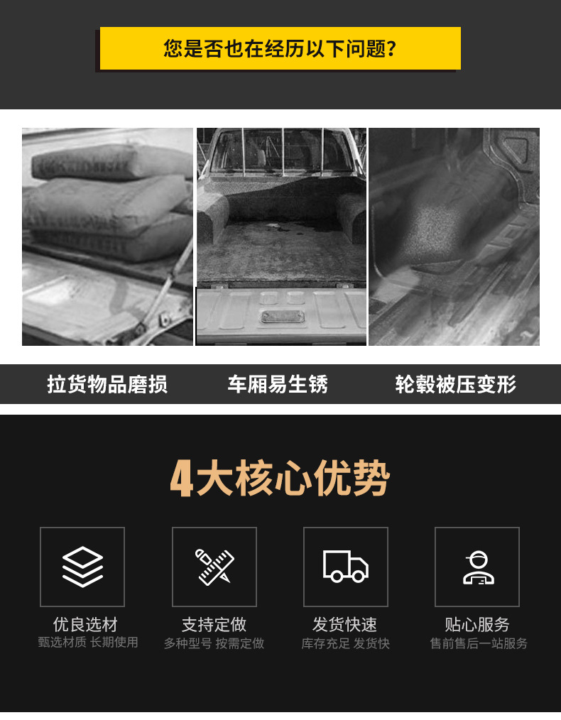 - Custom-fit cargo bed protection specifically designed for pickup truck rear compartments to prevent scratches and dents.