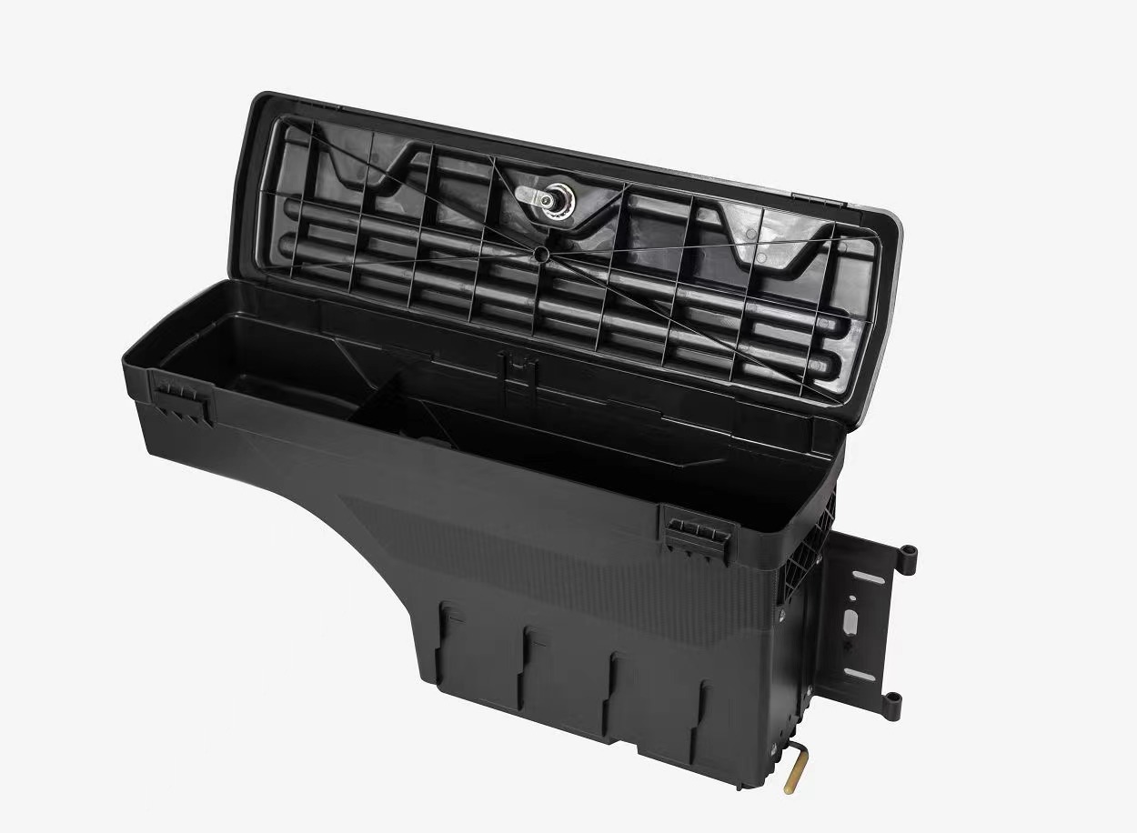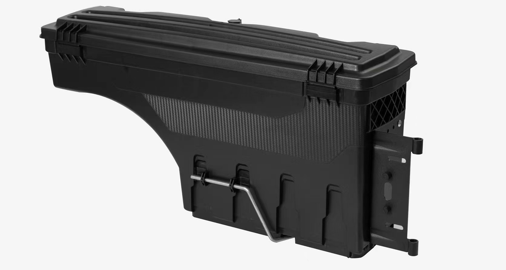 - Maximizes bed storage space by utilizing the often-wasted area behind the wheel well or along the tailgate.