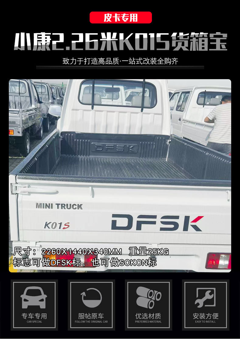 - Custom Fitment: Specifically designed for DFSK K01S mini trucks with a 2.26-meter cargo bed length for a seamless fit.