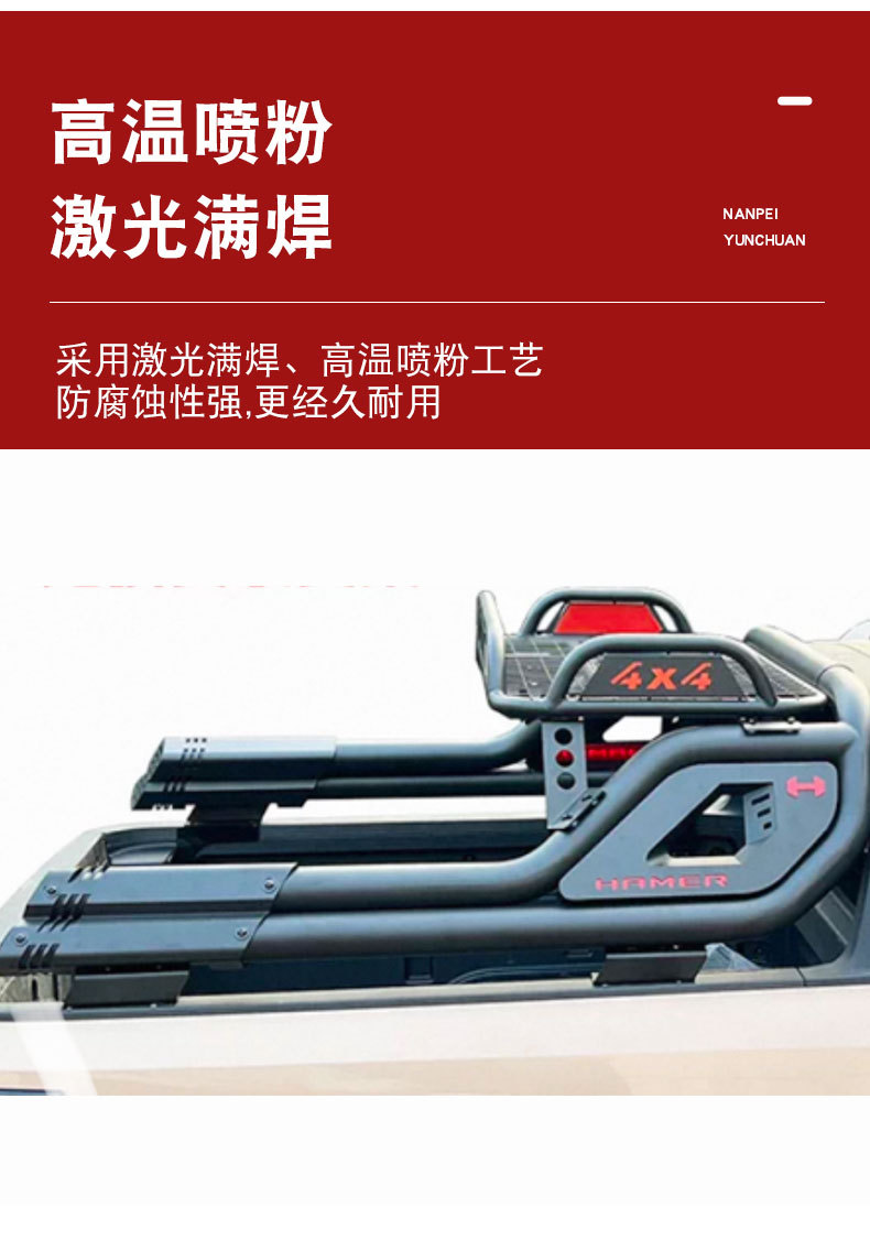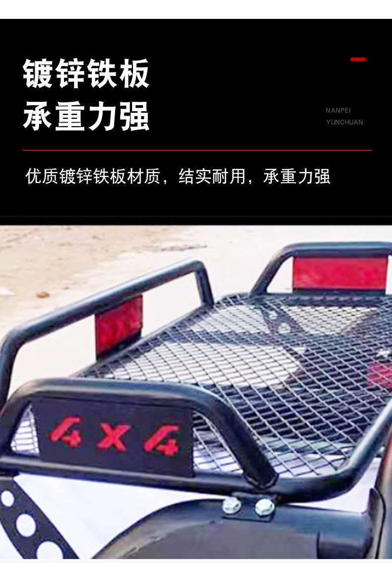 - Features a dual-purpose protective roll bar and luggage rack system for off-road utility.