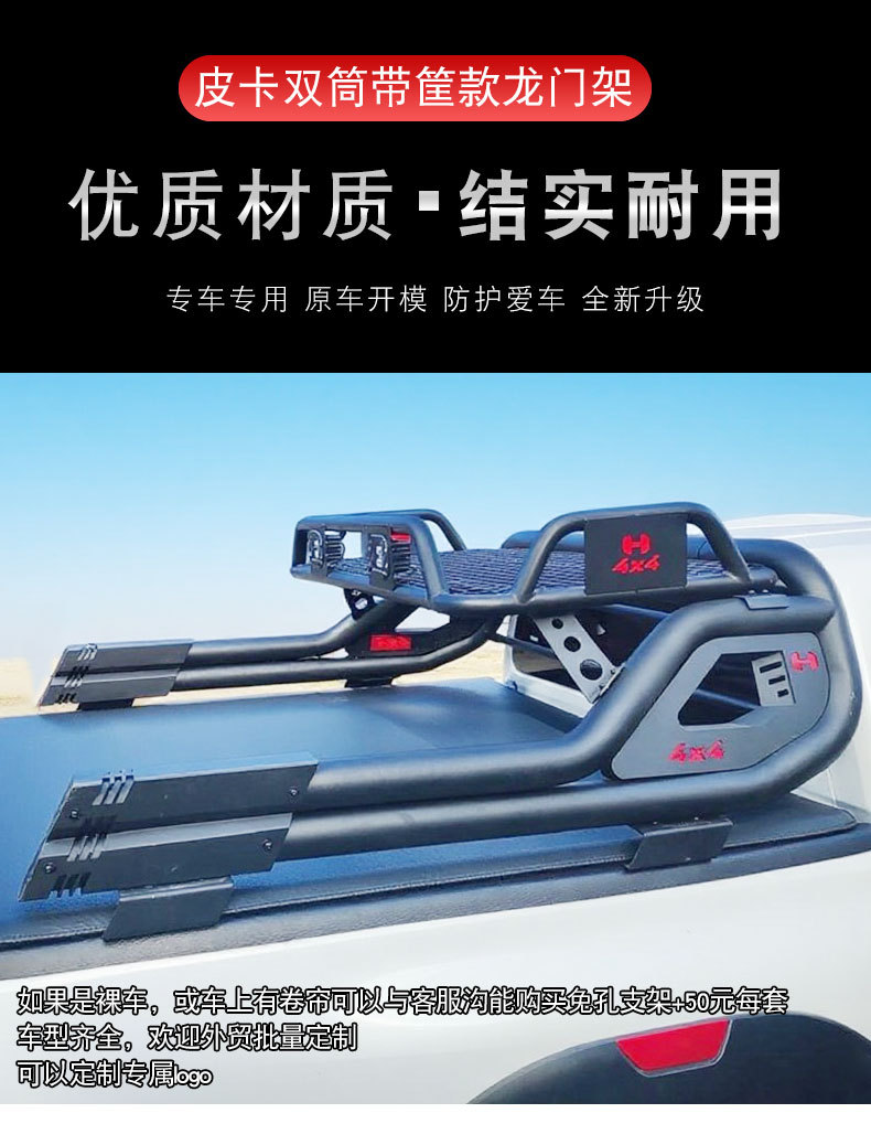 Upgrade your Hilux Vigo Revo SR5 with this heavy-duty double-tube roll bar featuring an integrated cargo basket. Durable steel construction for off-road utility.