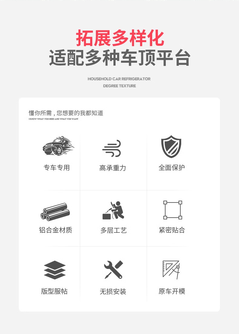 - High-strength thickened aluminum alloy construction ensures excellent load-bearing capacity for rooftop tents and heavy cargo.