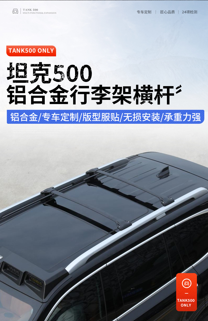 Upgrade your Tank 500 Hi4-T with these heavy-duty aluminum roof rack cross bars. Perfect for mounting rooftop tents and cargo carriers with easy installation.
