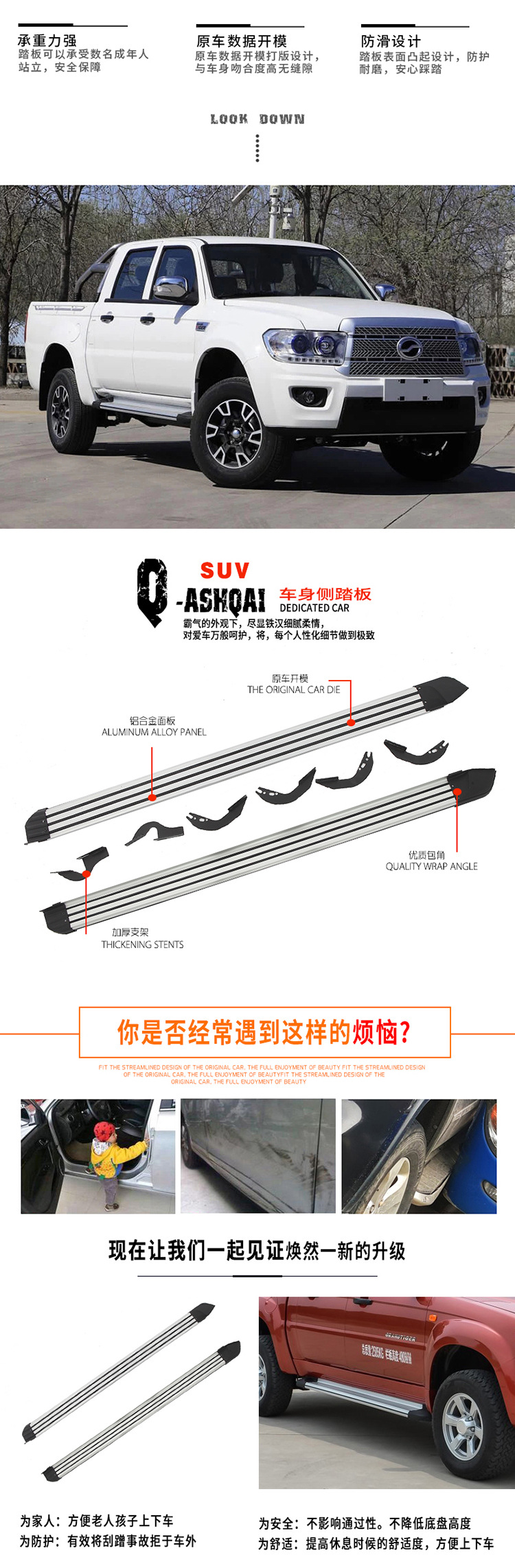 Heavy Duty Running Boards Side Steps Rail Pedals Compatible with Foton Tunland E3 E5 E7 Yutu Sheng途5 and ZX Auto Grand Tiger TUV G3