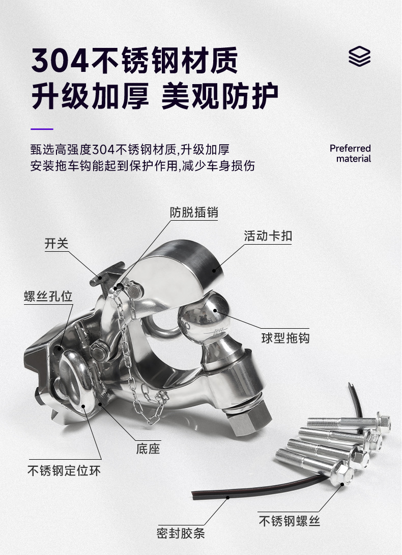 - Polished finish provides both a sleek aesthetic upgrade and a reliable connection point for towing.