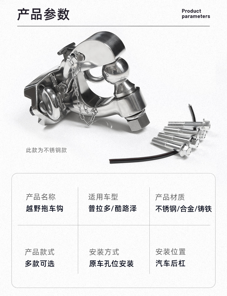 Upgrade your Toyota Prado with this heavy-duty stainless steel rear bumper trailer hook. Durable, corrosion-resistant, and perfect for off-road recovery tasks.