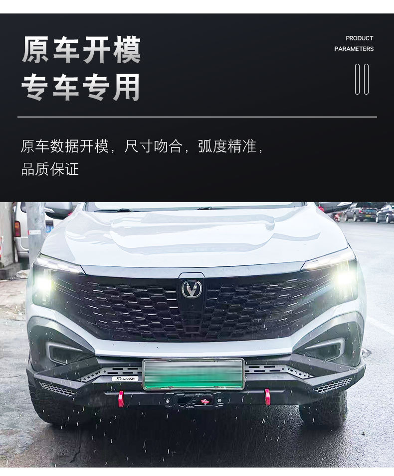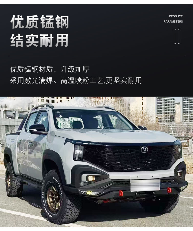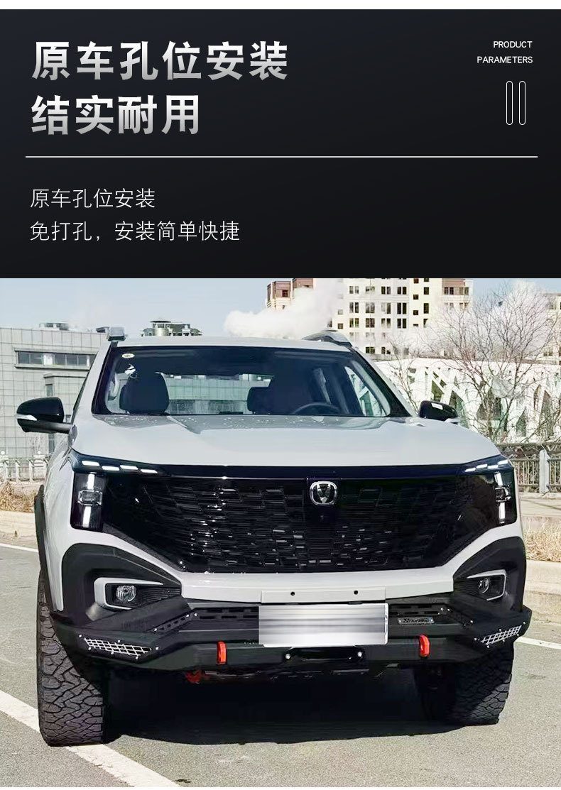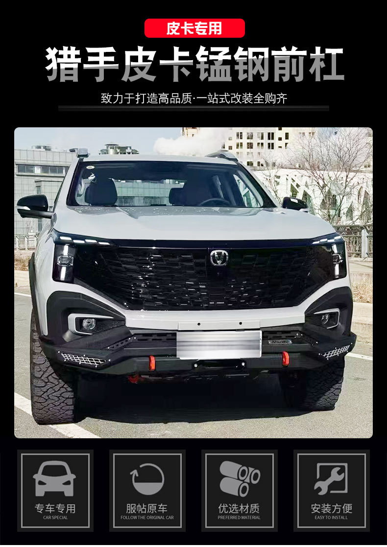 - Specifically designed for Changan Hunter pickup trucks to provide comprehensive off-road protection for both front and rear sections.